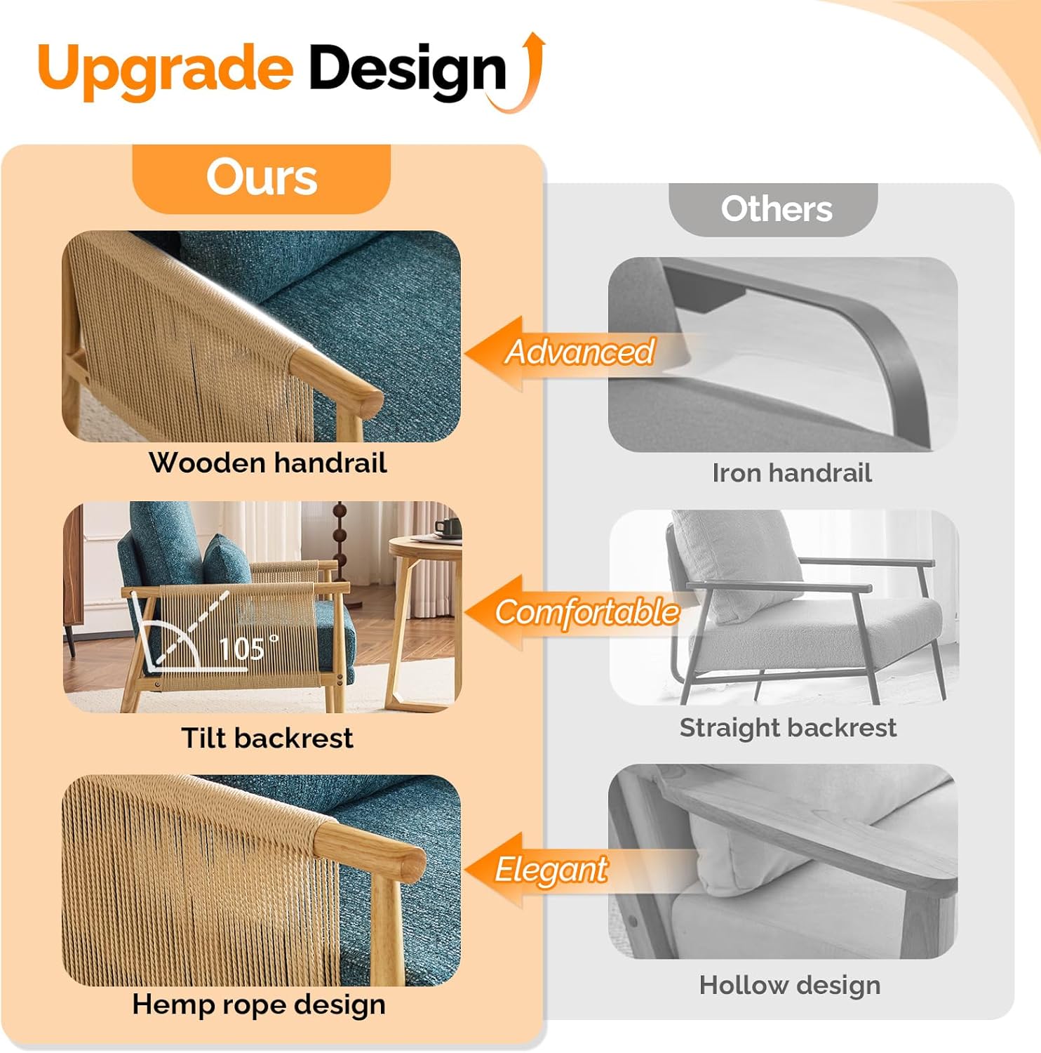 • Braid Design : The Boho-inspired Braid Accent Chair showcases elegant paper cord weaving across its angled armrests. Its thoughtful design combines comfort and style with a medium-height backrest and plush cushioning. This piece seamlessly blends casual and sophisticated interior comfort, perfect for home decoration.The two chairs will be shipped in separate packages. Please note that they may not arrive at the same time.
