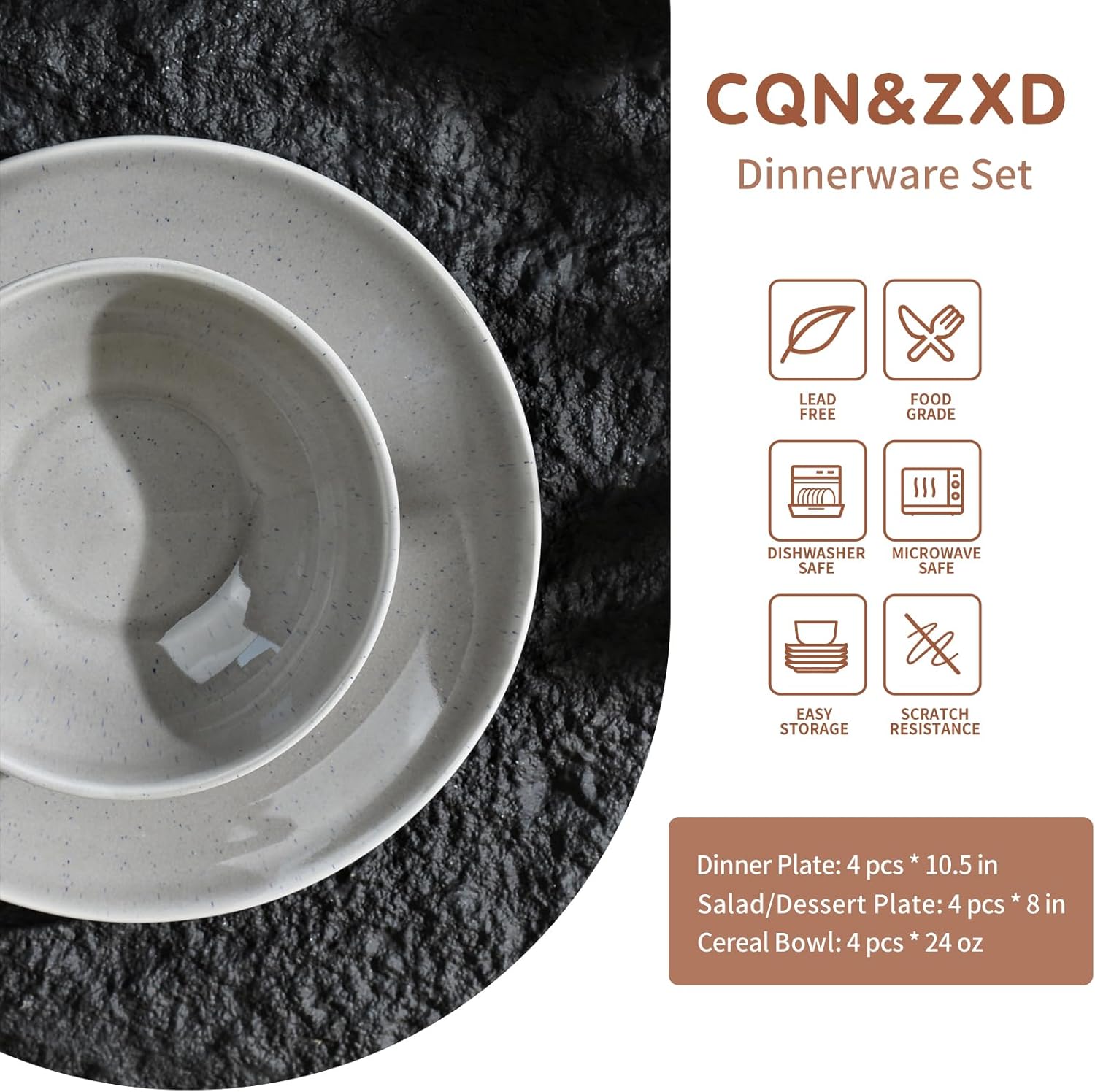 • DISHWASHER & MICROWAVE SAFE: CQN&ZXD's ceramic dishes set for 4 is handmade with high-end stoneware and rigorously tested by internationally certified laboratories to ensure safe use in microwaves and dishwashers.