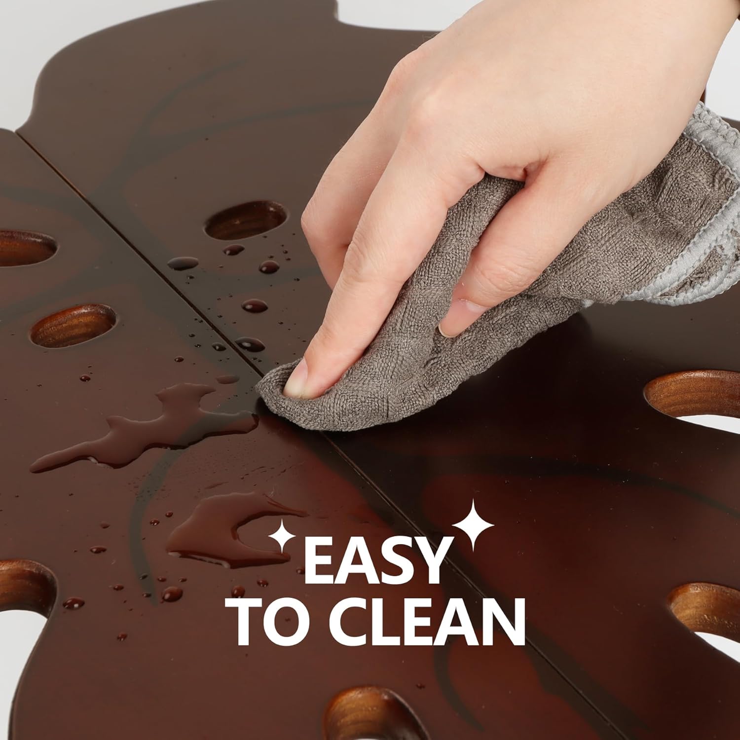 • Blends with Any Home Decor Style: Whether your home is adorned with a bohemian, minimalist, or modern aesthetic, these stylish nesting tables effortlessly integrate into your space. The elegant monstera leaf design on the dark brown tabletops, coupled with the black solid wood legs, complement any color scheme and add a touch of nature-inspired charm.
