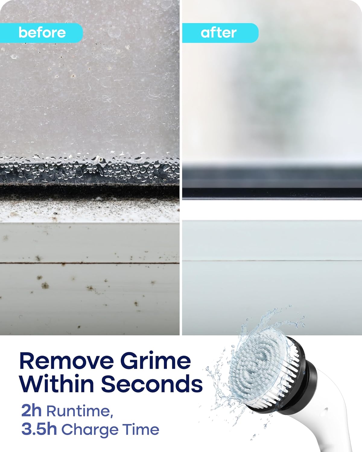 • ✔ 7 Brush Heads for Every Cleaning Task - Includes 7 replaceable heads-flat, pointed, round, sponge, and more-designed for tubs, showers, tile, windows, and even car detailing. All-in-one electric scrubber solution