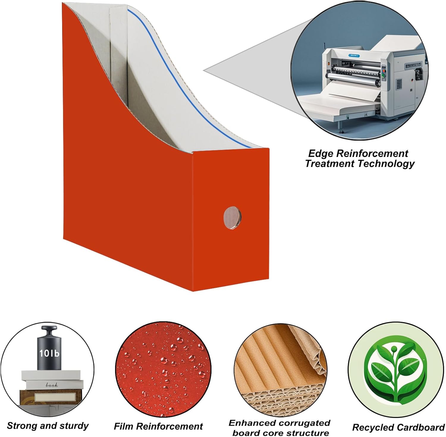 Cardboard Magazine Holder (24 Pack), Sturdy Book Bins for Classroom, Vertical File Folder Organizer, 10.6'' 10.2'' 3.5'' Inch Magazine Rack (Orange-Red, 24 Pack)