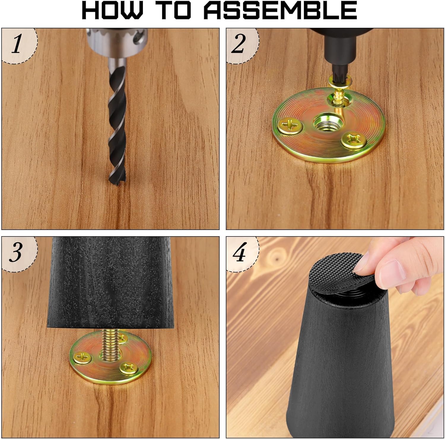• Sufficient quantity: you will receive 16 packs of black sofa legs, 16 packs of M8 T-nuts, 48 pieces of metal screws, and 16 pieces of anti-skid pads; all accessories are complete for easy installation (Note: the maximum load-bearing capacity of the 4 furniture legs is 250 kg)