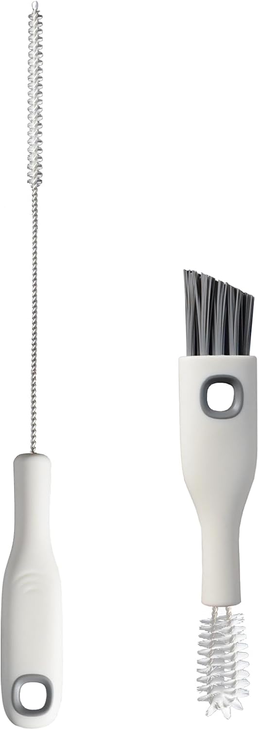 • PRECISION CLEANING DESIGN: The bevelled brush head of the 2-in-1 lid brush is suitable for cleaning the surface of cup lids and bottle tops, while the stiff bristled nylon brush head can penetrate deep into the crevices and grooves of the lids to remove stubborn stains. The long handle of the straw cleaning brush is designed to clean the inside of straws, easily solving stubborn dirt inside straws.