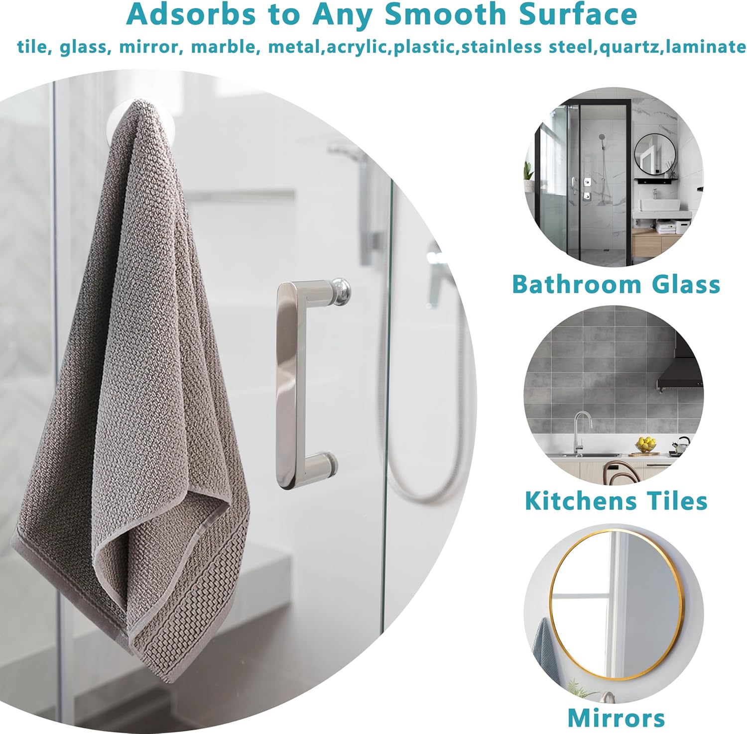 • 【Hangs Securely on 10+ Materials】The suction cup hooks are suitable for bathrooms,kitchens,windows.it can be fixed to fit tile, glass, mirror, marble, metal,acrylic,plastic,stainless steel,quartz,laminate and other smooth wall surfaces.it can hang towels, loofahs, bathrobes, coats and other items up to 15 lbs