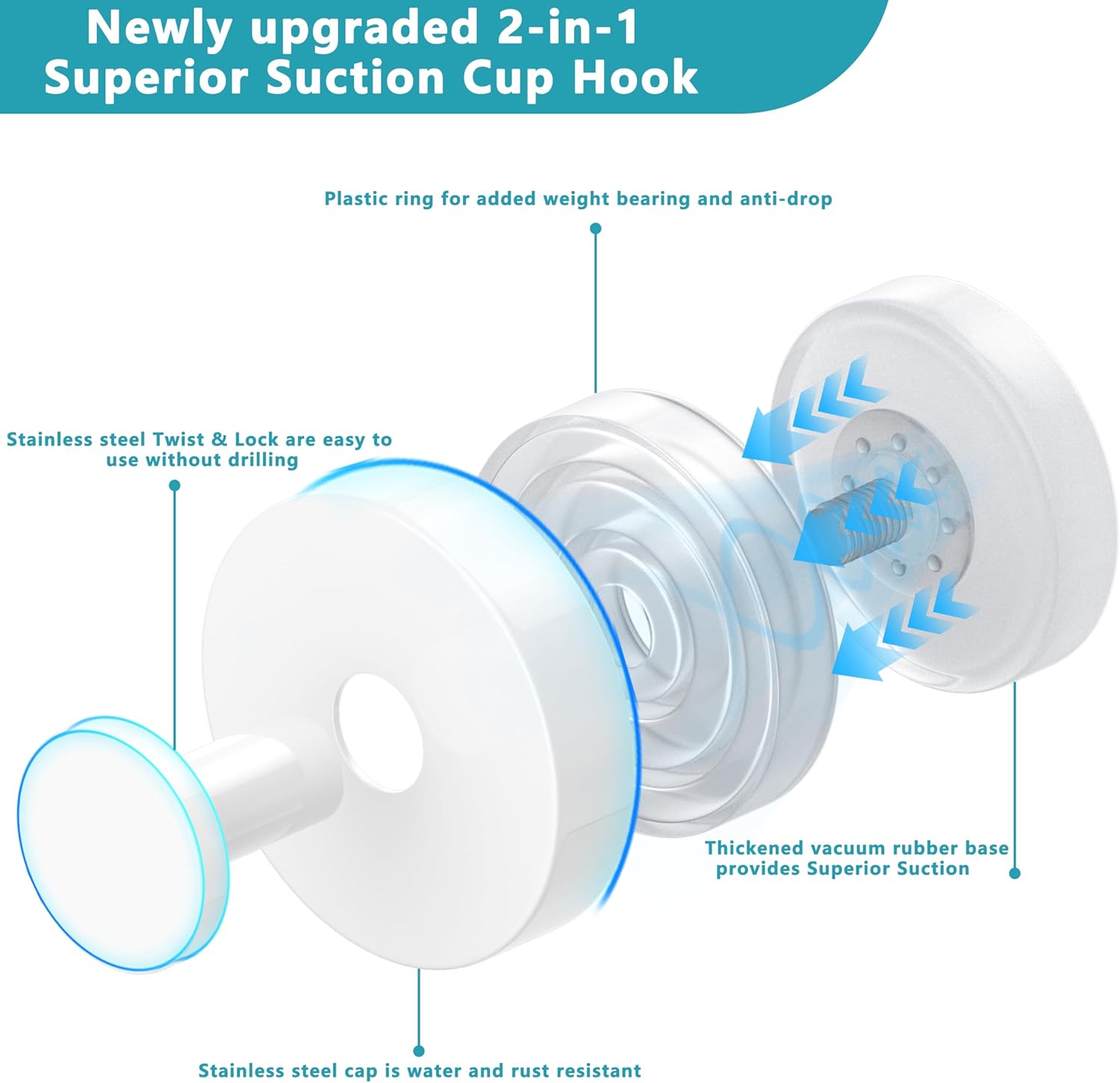 • 【Superior Suction】Newly upgraded 2-in-1 vacuum suction cup hook, high viscosity silicone base, with advanced vacuum suction technology, to create a strong suction, load-bearing 15 lbs without falling.