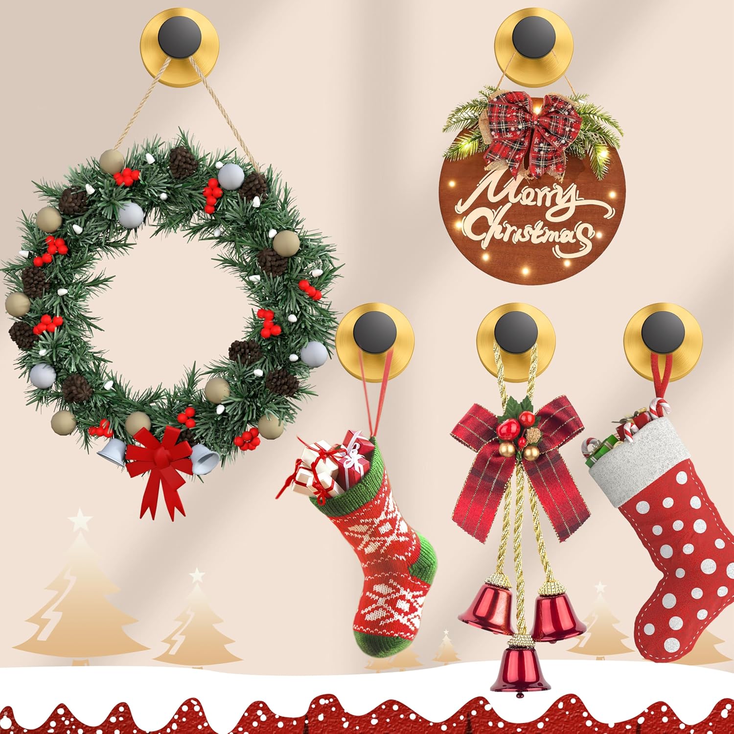 • 【Hangs Securely on 10+ Materials】The suction cup hooks are suitable for christmas decorations ,bathrooms,kitchens,windows, wreath hanger,heavy duty suction cups for glass.it can be fixed to fit tile, glass, mirror, marble, metal,acrylic,plastic,stainless steel and other smooth wall surfaces.,it can hang towels, loofahs, bathrobes,garland wreath and other items up to 15 lbs.