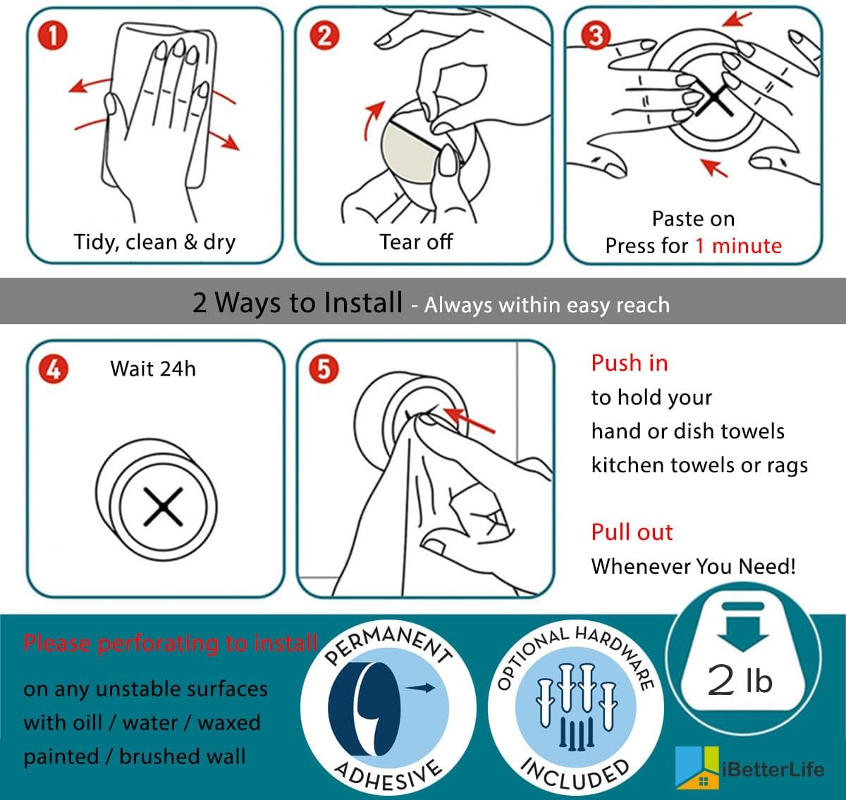 • ✔ 𝙒𝙞𝙩𝙝𝙞𝙣 𝙀𝙖𝙨𝙮 𝙍𝙚𝙖𝙘𝙝 - 𝙅𝙪𝙨𝙩 𝙃𝙤𝙡𝙙 𝙄𝙩 𝙏𝙝𝙚𝙧𝙚 - Pull Out Whenever You Need! Keep the kitchen organized with adhesive hooks for hanging hand or dish towels within easy reach.