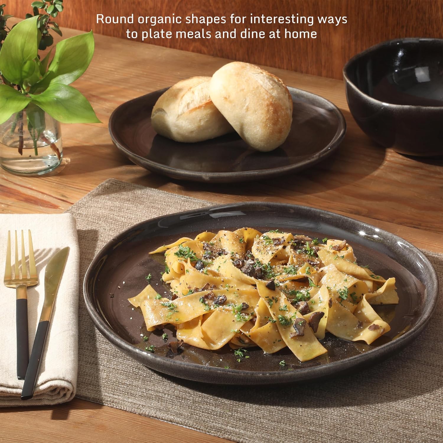 Gibson Elite Nardini 12 Piece (Service for 4) Plates and Bowls Reactive Glaze Dishes Stoneware Ceramic Dinnerware Set - Black