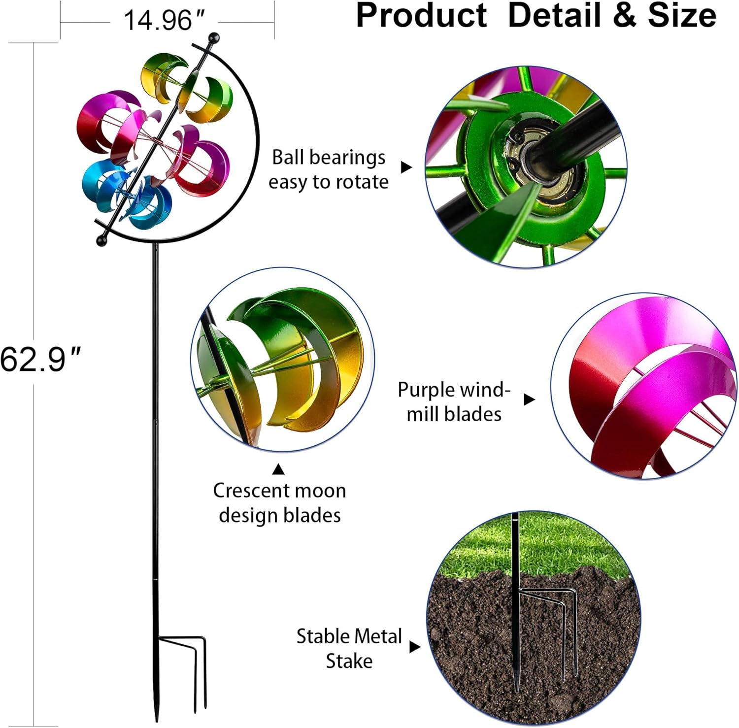 • Elegant Yard Art & Gift-Ready: A stunning centerpiece for gardens or a thoughtful gift for nature lovers. Its intricate motion and metallic shine captivate both adults and kids, turning any outdoor area into a whimsical retreat.