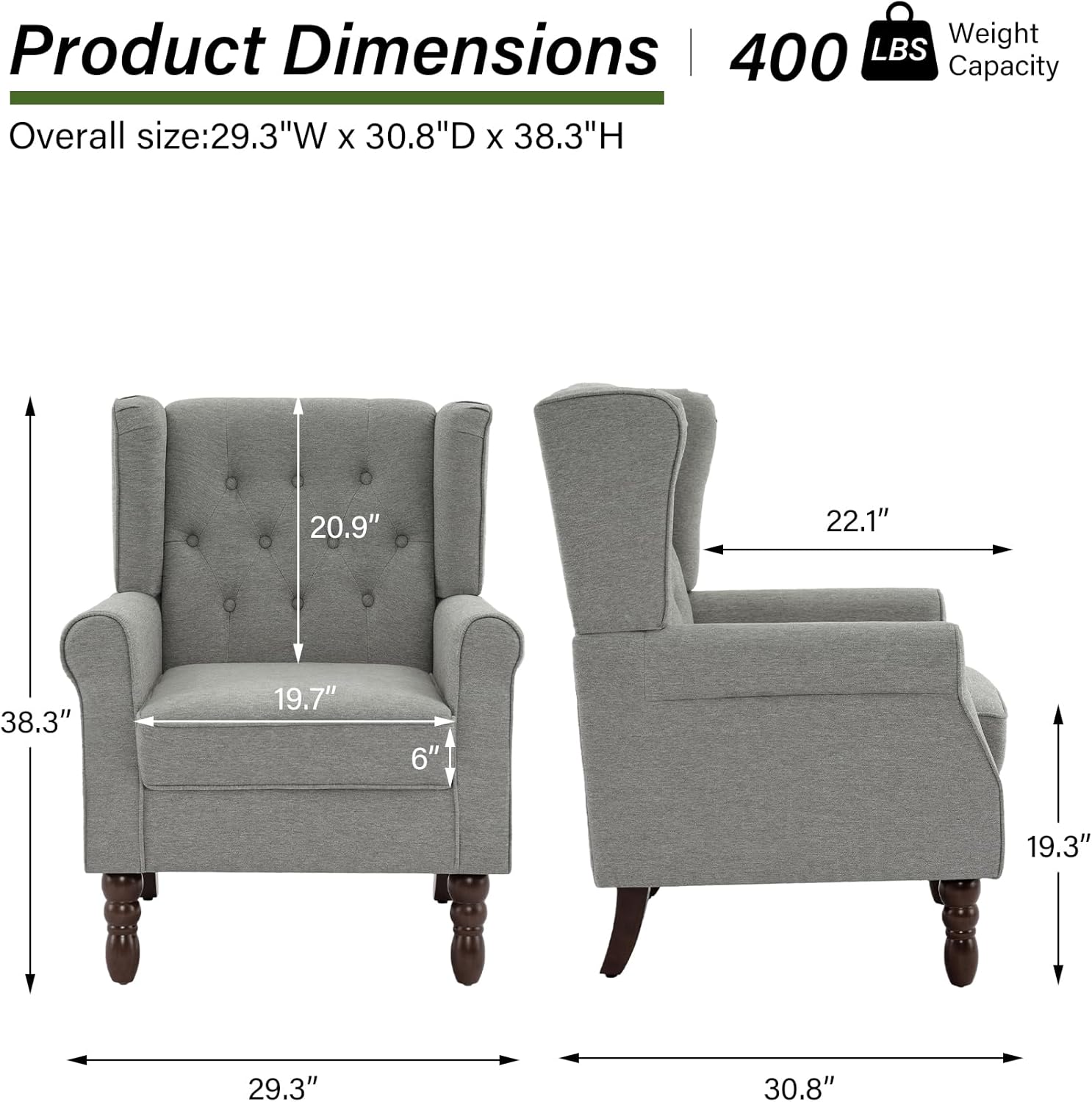 • High Back Accent Chair: The wingback of living room chairs is higher, which can better relieve the pressure on the back and waist, and bring a comfortable sitting experience