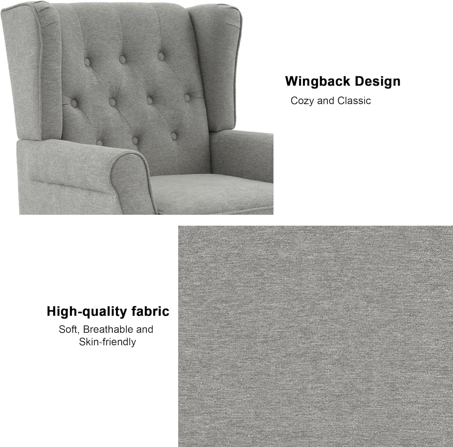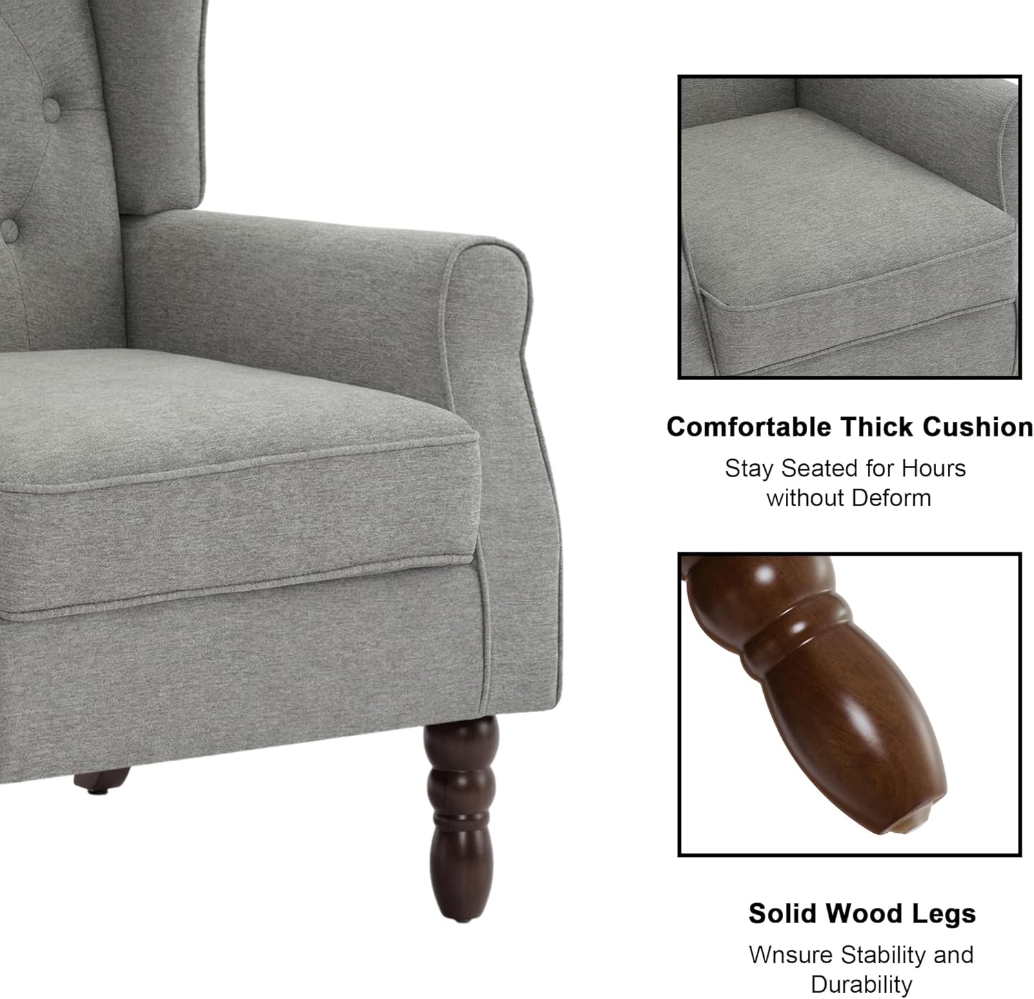 Accent Chair, Upholstered Armchair with Button Tufted High Back & Solid Wood Legs, Comfy Wingback Reading Single Sofa Chair for Small Spaces, Living Room, Bedroom (Light Grey, Set of 2)