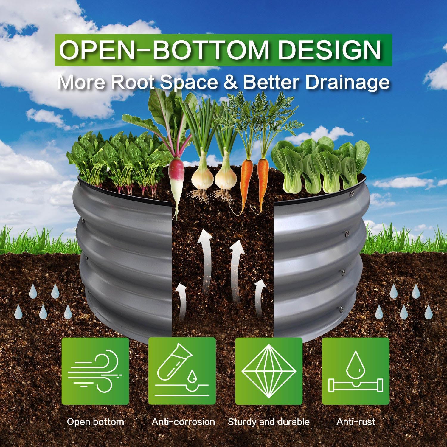 • OPEN BOTTOM DESIGN: GARDMAX galvanized planter raised beds are designed with an open bottom, which is good for drainage to protect plants, plant roots won't be sick from excessive water. It also keep weeds away from soil and keep out chicken small pets like puppies, rabbits to protect your plants
