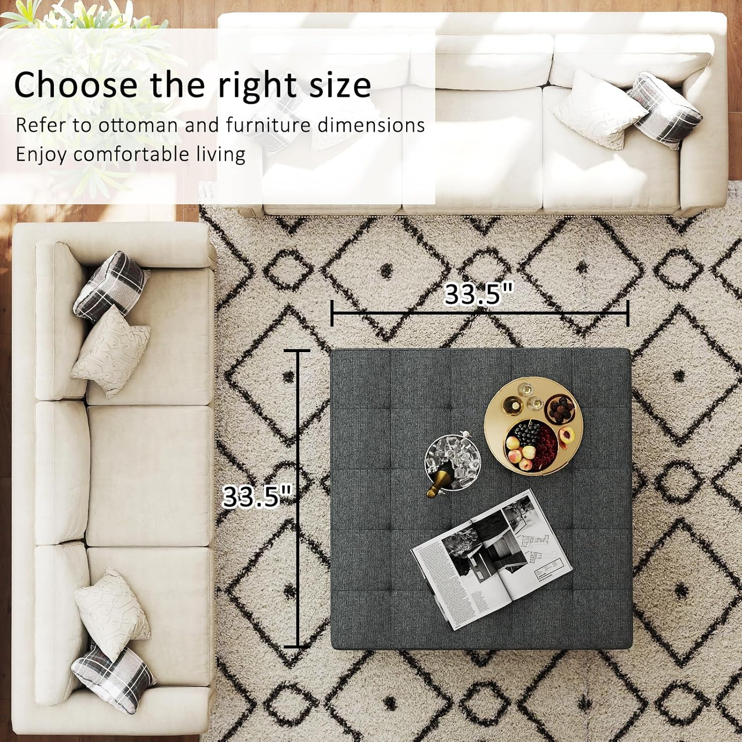 • Ottoman Coffee Table Size:33.5" Wx33.5" Dx18.5" H. Easy to bear 400 pounds