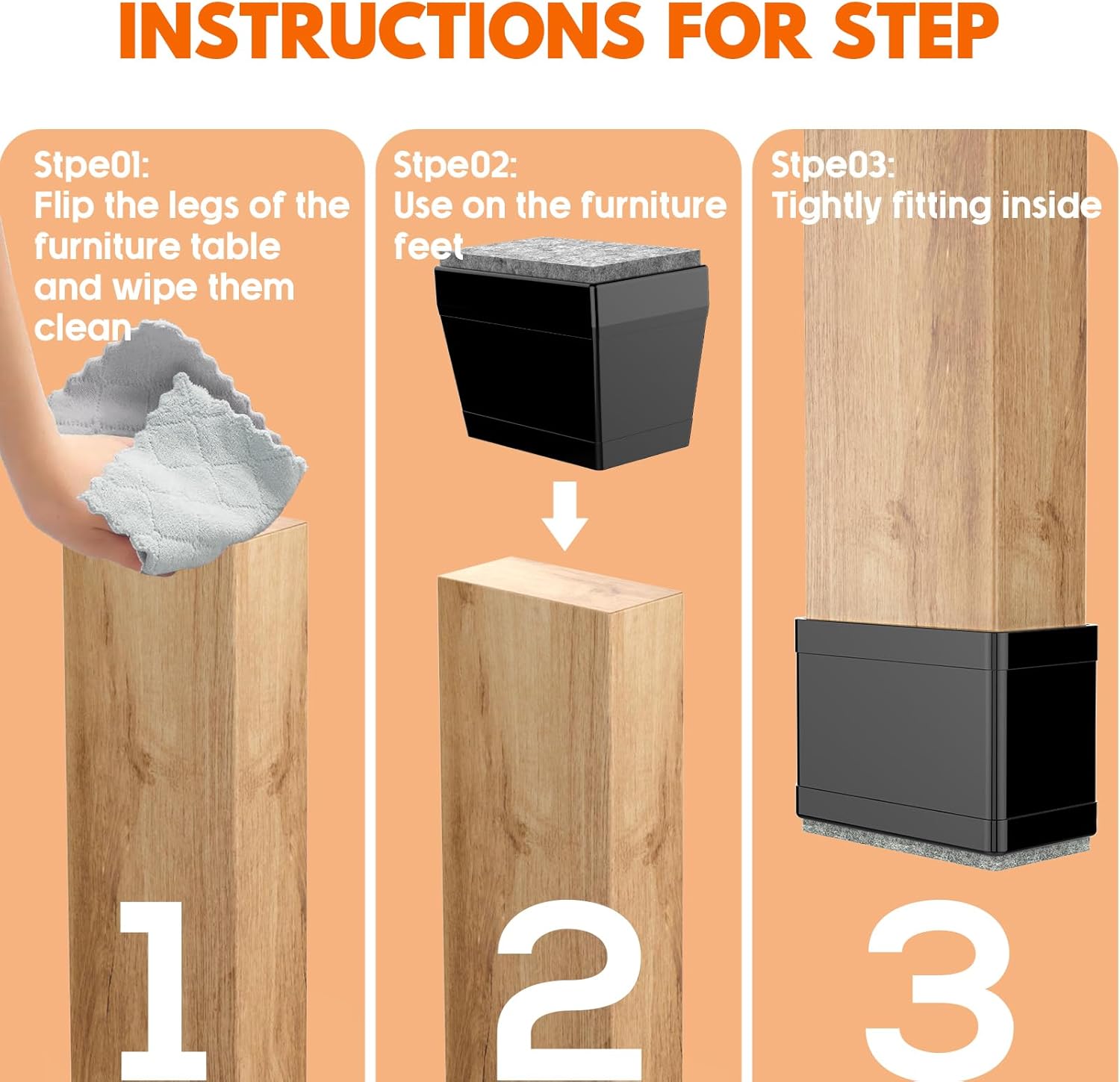 • Easy to install: Chair Leg Protectors can easily stretch to fit over furniture legs. Just slip them over your chair legs, and they’ll fit snuggly to stay in place! No tools needed and no chair foot cleaning needed.If silicone furniture protectors for chair legs is dirty, you can remove it and wash it and use it multiple times.