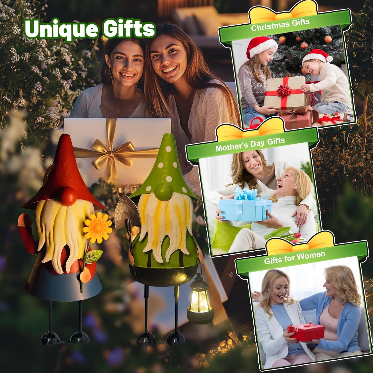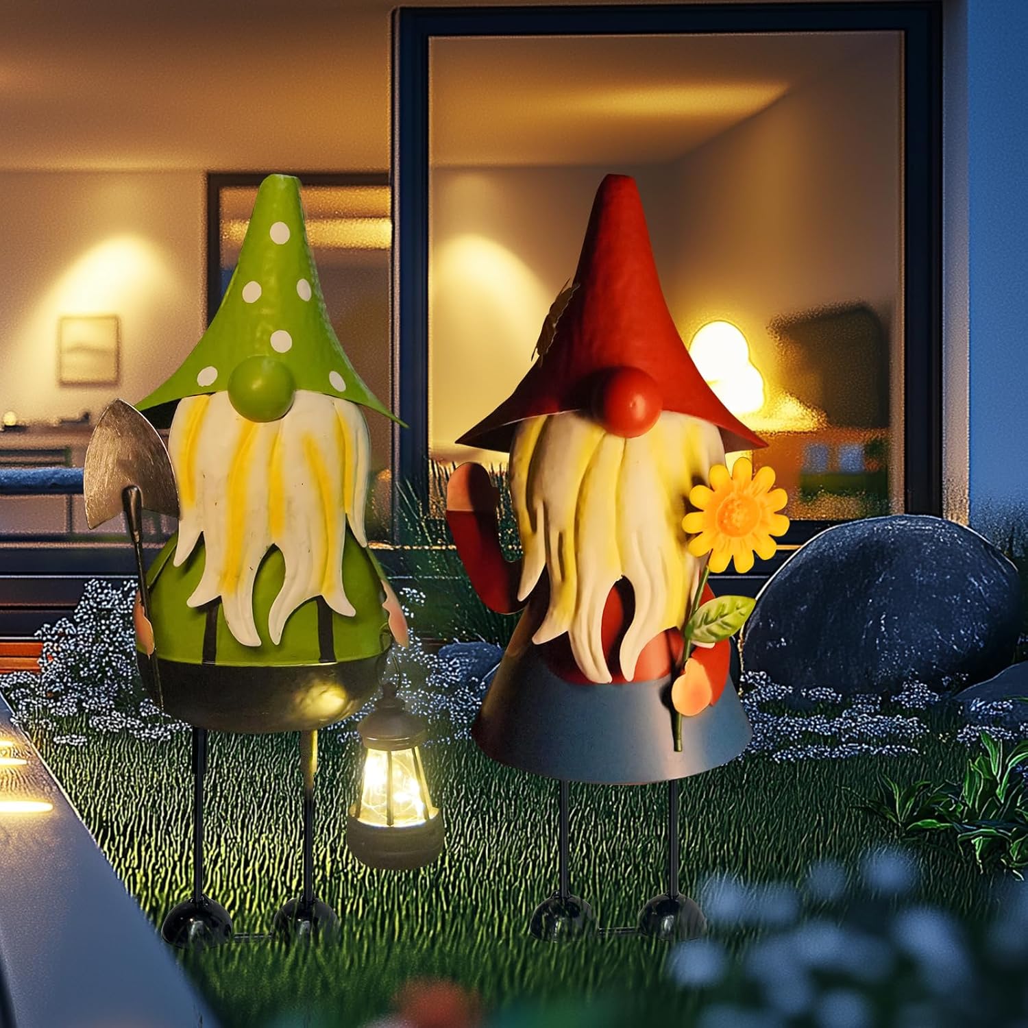 • 【Practical Metal Gnomes Garden Decorations】The handcrafted metal gnomes garden decor is made of high-quality iron, rust-proof with eco-friendly paint, suitable for outdoor, 3D design makes it look more realistic&vivid, they can be placed not only on the lawn, but also in the yard or flower bed, add the festival atmosphere during holiday