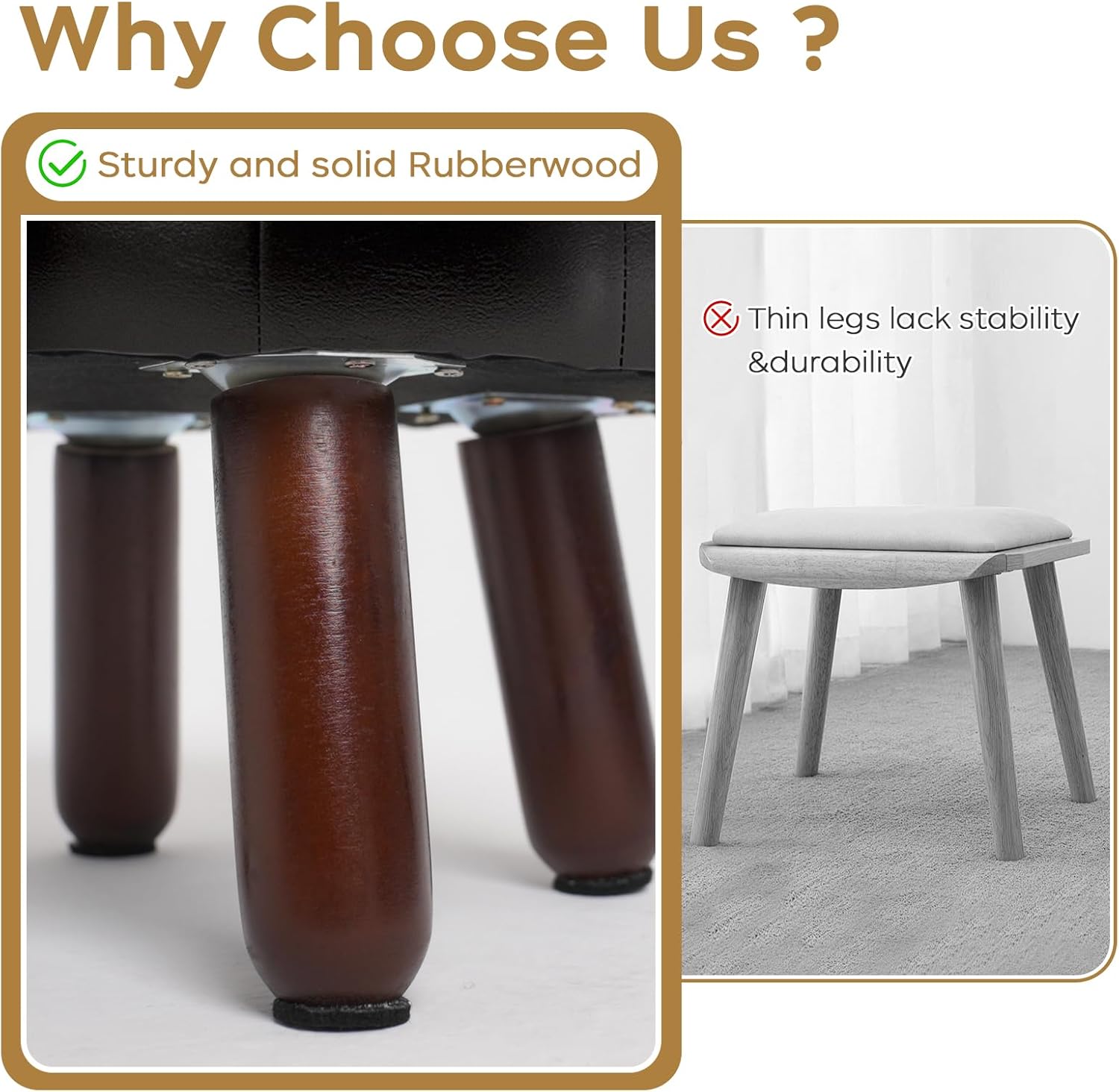• 【Anti-Slip Design】- These leather foot stools small ottoman rubber legs come with dedicated felt pads to prevent scratches on floor and keep it from sliding.Wood leg with non-slip felt pad is quiet when moving, and can avoid leaving scratches on floor.The small footstool is perfect for small spaces and is compact enough not to get in anyone's way.