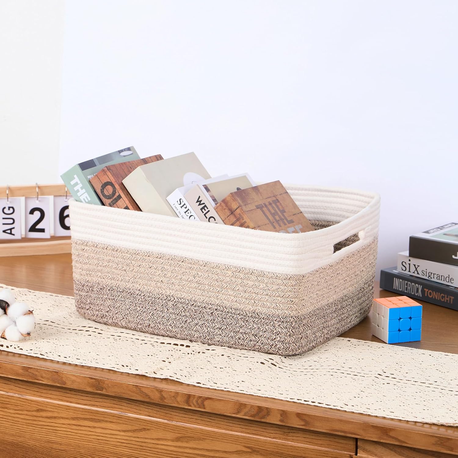 • [ Stylish Design ]: With a modern minimalist design, our woven rope baskets are a chic alternative to traditional rattan. They’re perfect for closets, changing table organizer, and cube shelves, adding warmth and texture to any room while tackling home clutter