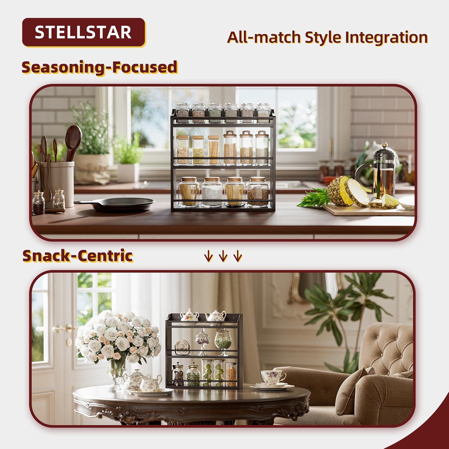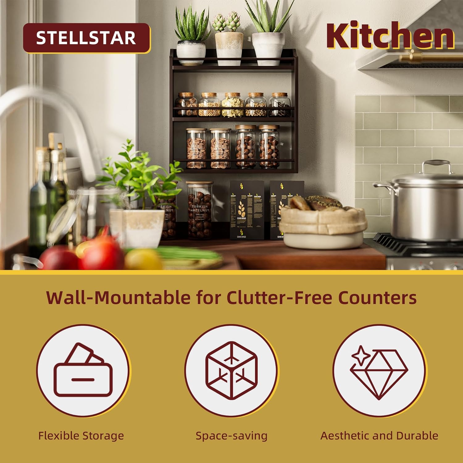 • SIMPLE, ELEGANT & VERSATILE: This rack is both a stunner and a workhorse. Its minimalist design oozes elegance, blending seamlessly with any decor to add warmth. But it’s more than a spice rack! Use it to organize your coffee bar, declutter your bathroom, or neatly stack snacks in mason jars. Wherever you place it—kitchen, pantry, bathroom—it transforms chaos into a tidy, stylish space