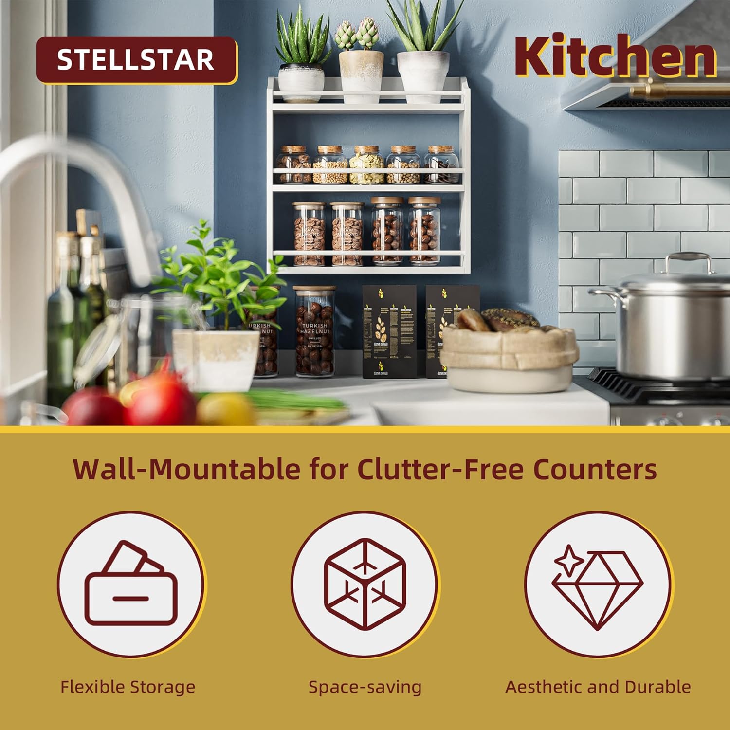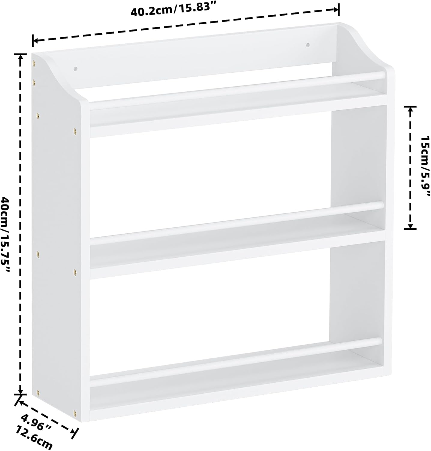 Spice Rack Wall Mounted, Freestanding Spice Organizer for Countertop, Bamboo Spice Storage Holder, for Kitchen Cupboard, Pantry, Bathroom (White)