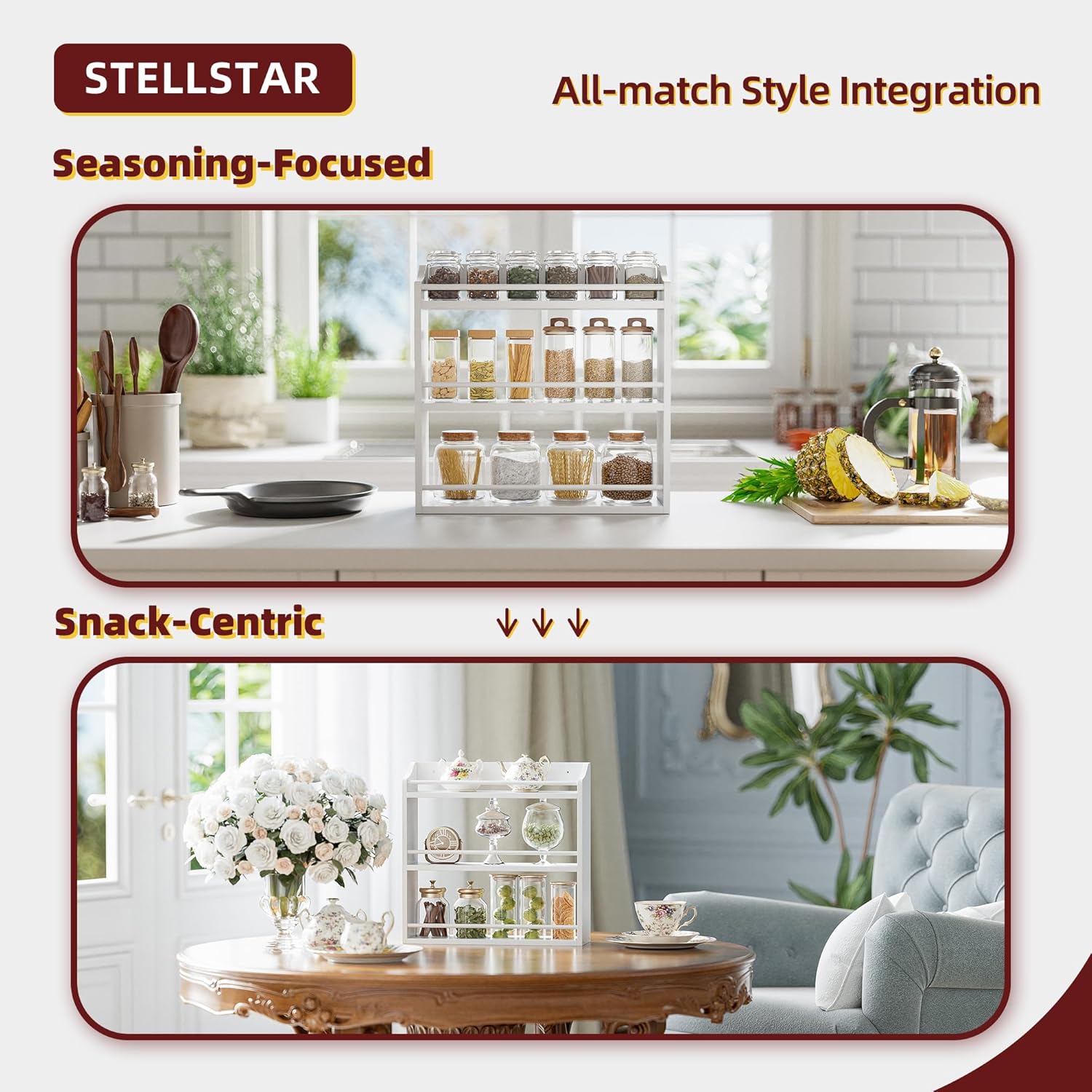 • SIMPLE, ELEGANT & VERSATILE: This rack is both a stunner and a workhorse. Its minimalist design oozes elegance, blending seamlessly with any decor to add warmth. But it’s more than a spice rack! Use it to organize your coffee bar, declutter your bathroom, or neatly stack snacks in mason jars. Wherever you place it—kitchen, pantry, bathroom—it transforms chaos into a tidy, stylish space