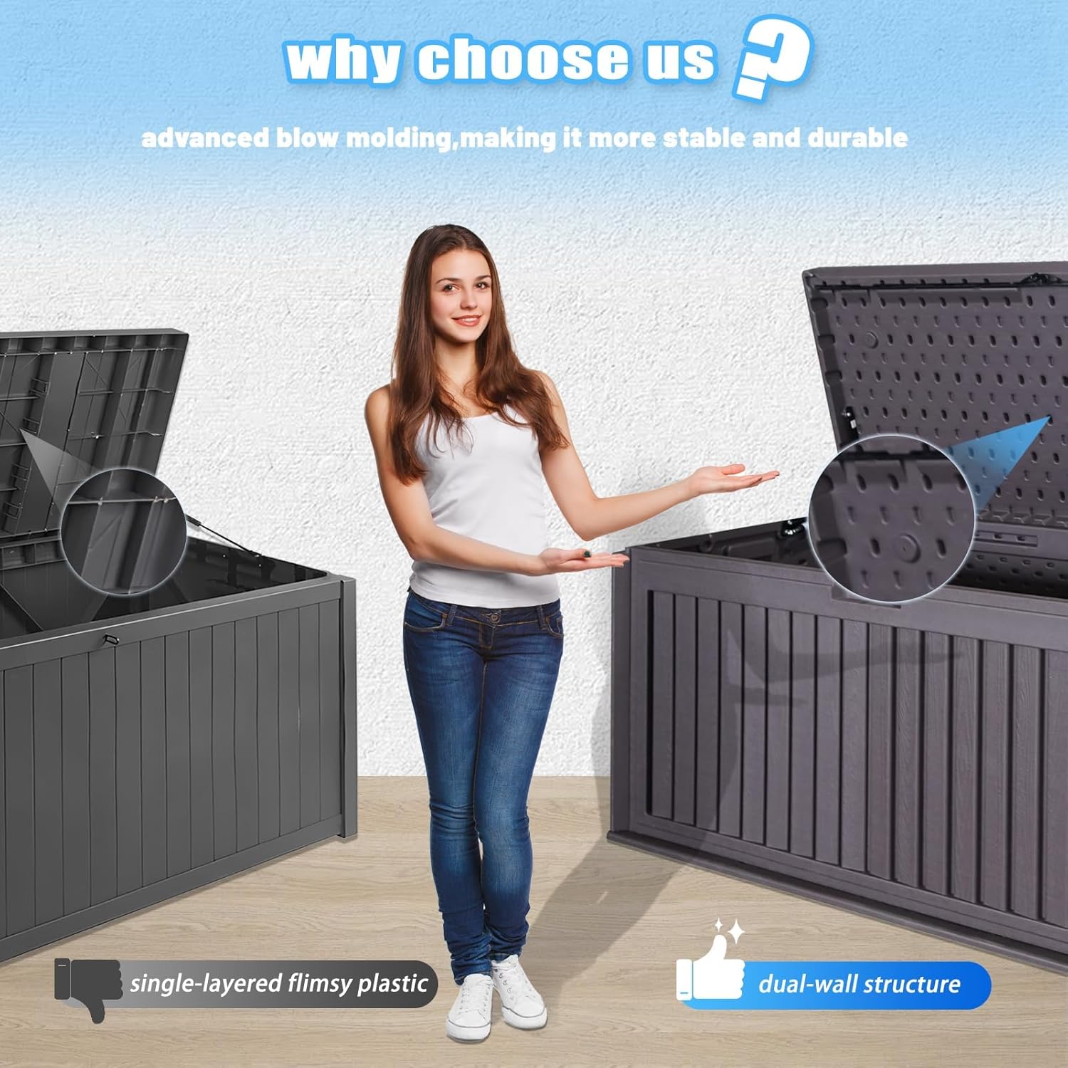 • Durable Dual-Wall Construction: Crafted with a dual-wall design, this outdoor deck box ensures superior strength and long-lasting performance. It’s built to withstand all weather conditions, keeping your items safe and protected.