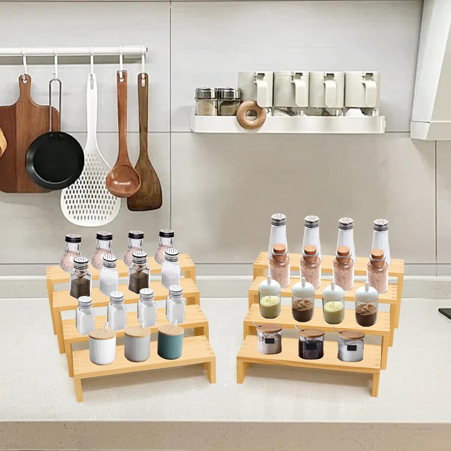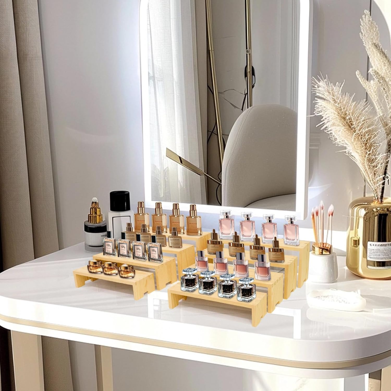 • 【Large Wooden Tierd Risers for Display】🎁: This 2 set 4 tier display shelf for cupcakes or vendors has stackable nesting design, so the wooden display risers easily access as desktop storage racks,also they has strong load-bearing capacity for more kinds perfumes, collectible figures,kitchen condiment bottles, bathroom toiletries because of varieties size of (L8.6''/22cm-9.4''/24cm-10.2''/26cm-11''/28cm)XW3.14'' /8cm