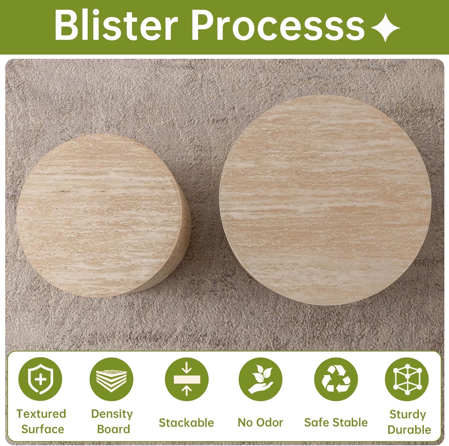 • [Timeless Aesthetic, Effortless Elegance] Designed with a sleek round silhouette and a chic beige textured finish, this nesting table set complements modern, industrial, farmhouse, and luxury interiors alike. Round coffee table set of 2 a statement piece that always feels right at home!
