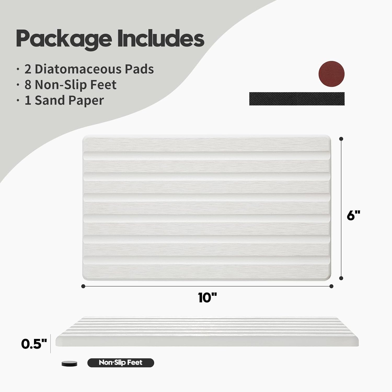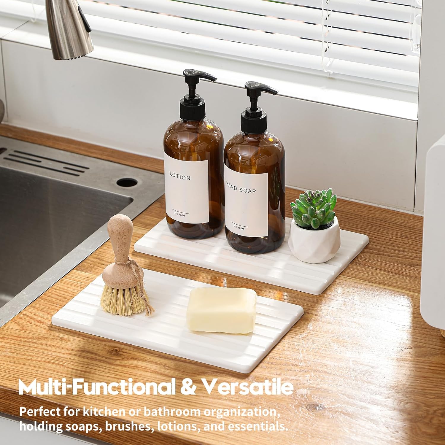 2PCS Water Absorbing Stone Drying Tray Mat for Bathroom Sink & Kitchen Counter Organizer, Quick Dry Dish Soap Dispenser Sponge Holder, Vanity Sink Caddy, Drink Bar Coaster, White - 10"*6"