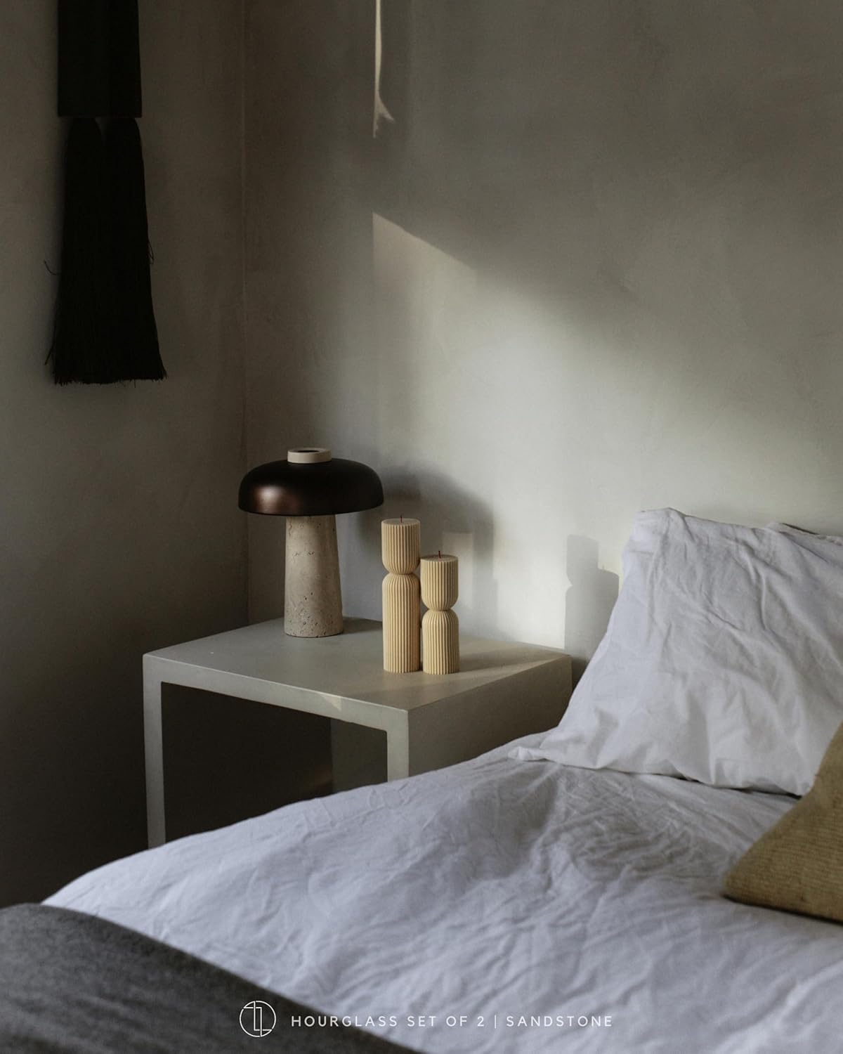 LAWA Hourglass Pillar Candle - Large Beautiful Handmade Pillar Scented Soy Wax Candle Elegant Bubble Aesthetic Candle Housewarming Gift Home Room Shelf Decor Idea Sandstone (Set of 2)