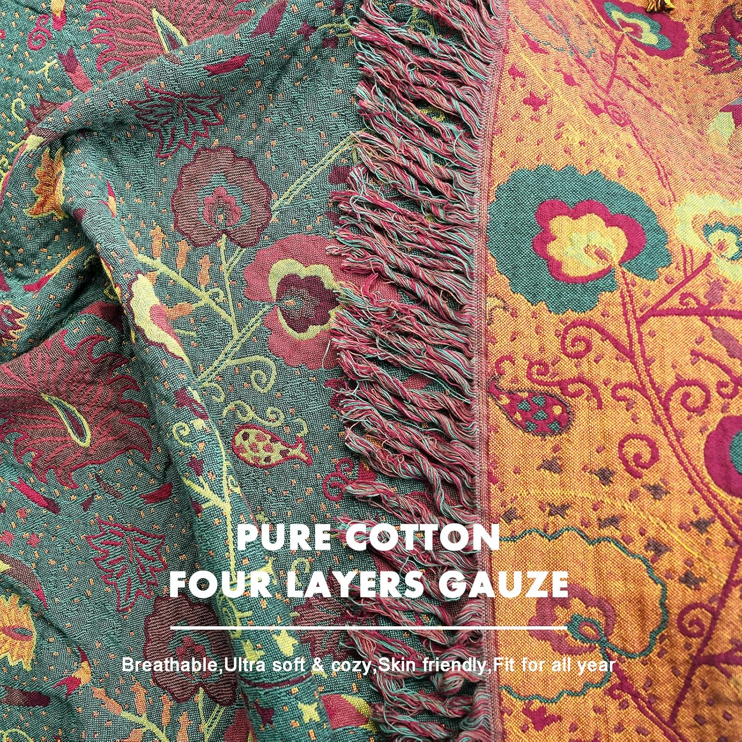 MSGKV Boho Throw Blanket for Couch and Sofa Cotton Blankets for Living Room Bedroom Reversable Florals Throw 60"x80" Breathable Cozy Blankets