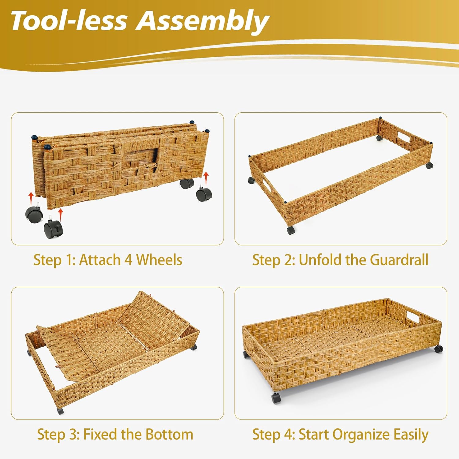 • BREATHABLE & DURABLE: Our under bed storage on wheels is made of handmade rattan weaving, which ensures air ventilation to keep your seasonal garments dry and fresh. The toughness of rattan makes underbed storage more durable.