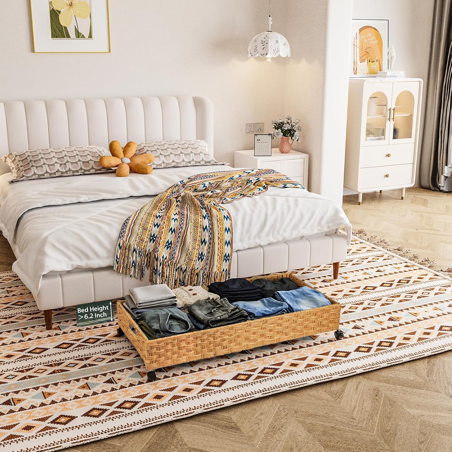 • BOHO DECOR MUST-HAVE: Farmhouse to urban chic.Rattan under the bed storage bin elevate hidden organization. 90% of buyers rated them 'perfect storage display,' praising their functionality while maintaining a stylish boho aesthetic.