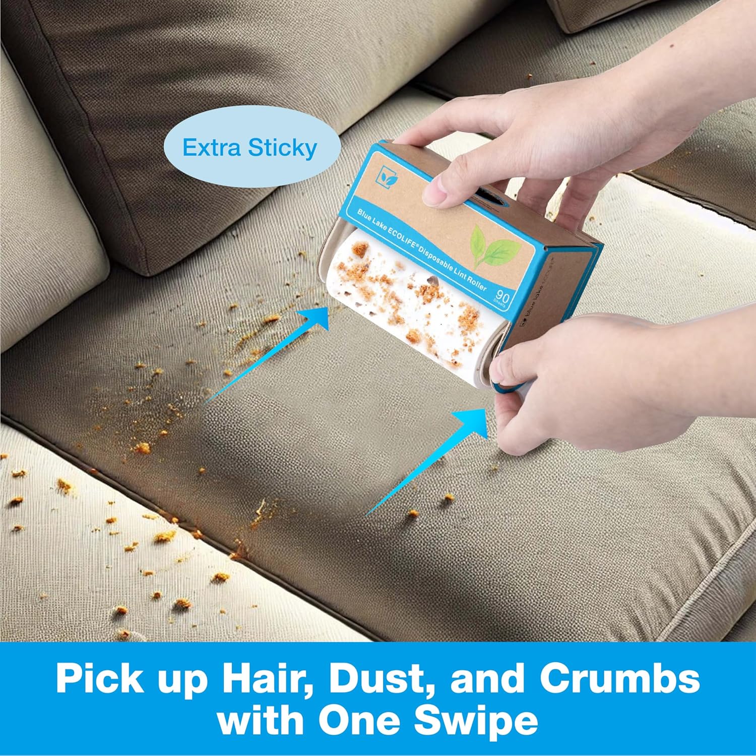 Blue Lake ECOLIFE Plastic-Free Lint Roller โ€“ 4-Pack (360 Sheets) | Extra Sticky & Eco-Lint Remover| Ideal for Clothes, Furniture & Carpet(4 Pack-360 Sheets)