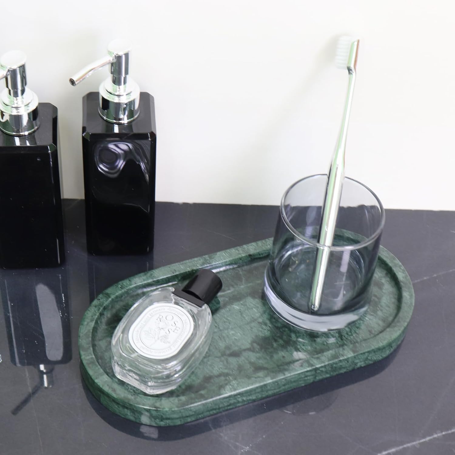 • Vanity tray 12 x 5 inches is suitable for various scenarios.It is the perfect size to place on a bathroom vanity to store hand soap, toiletries and hand towels. Because it is natural marble, the texture of each stone is different and the pattern on the tray you buy will be different from the picture