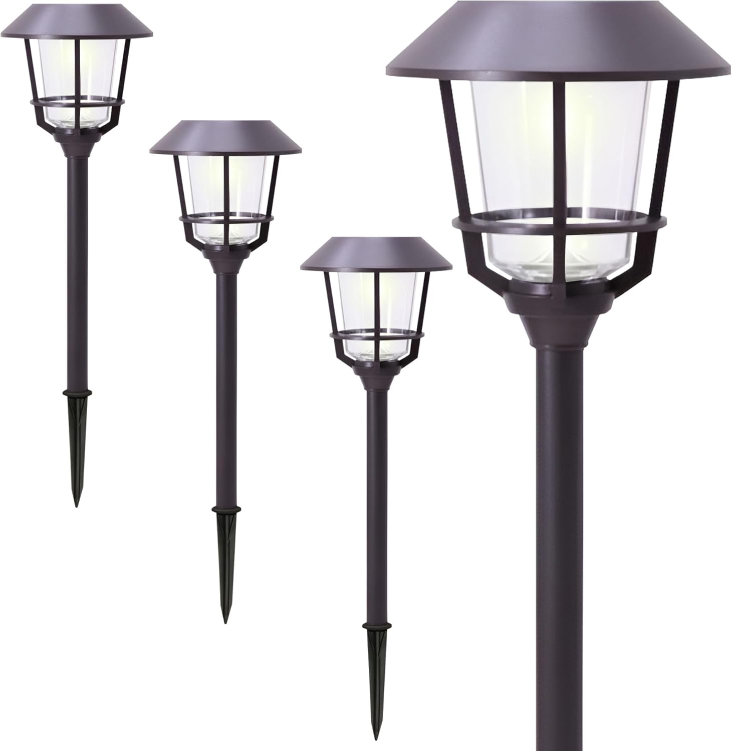 Solar LED Path Lights 4 Pack – 12 Lumens, Warm White, Oil-Rubbed Bronze, Solar Powered, Stainless Steel, Weather-Resistant for Garden, Walkway, Patio