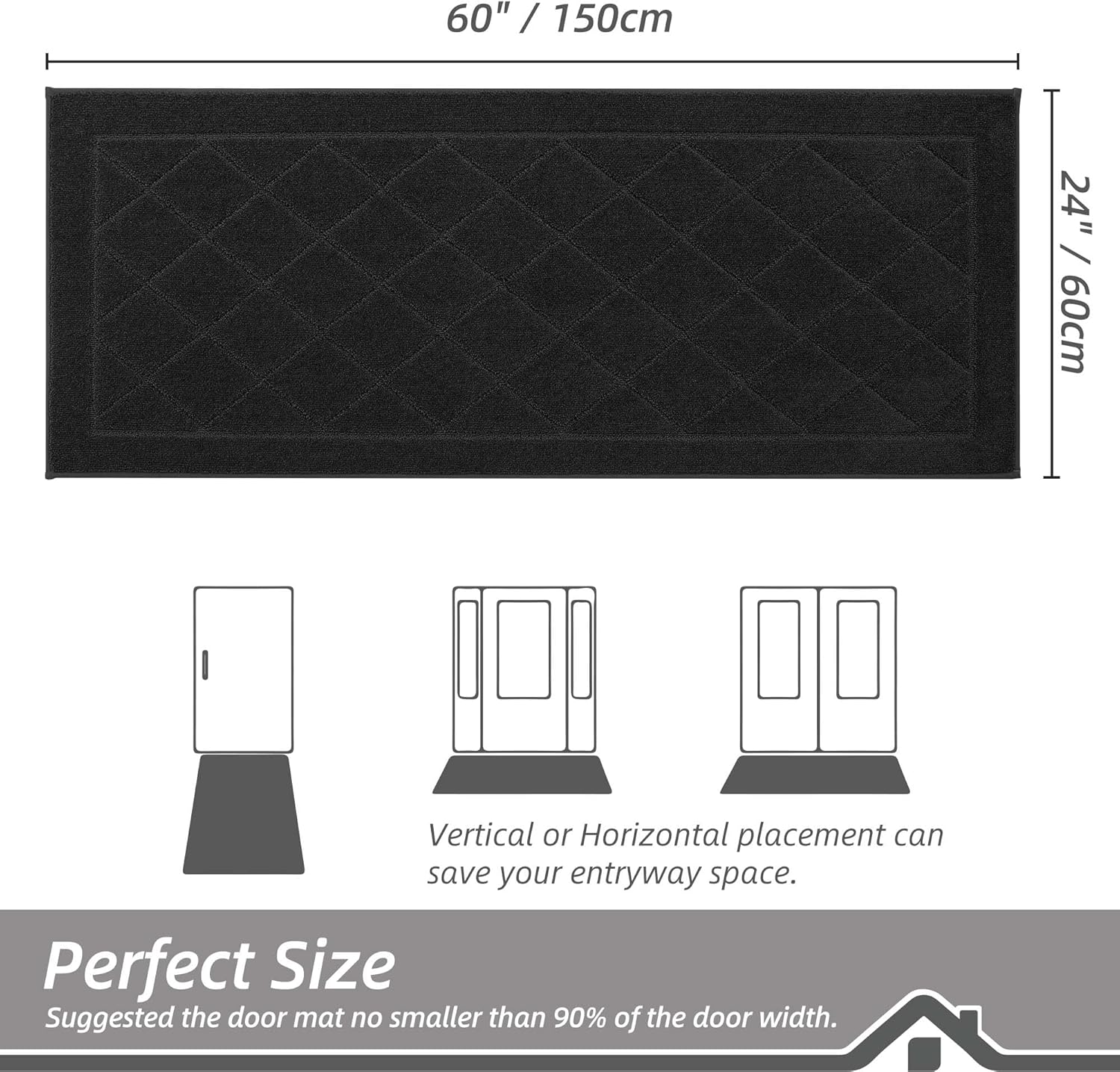• Stylish and Low Profile Design: Fashionable geometric patterns are suitable for most kinds of home décor. Our doormats measure 24" x 60" x 0.45", low-profile design and reinforced overlock edges to ensure that doors won't get stuck or the door rug go curling. Note: Please confirm the height of the door gap before purchasing