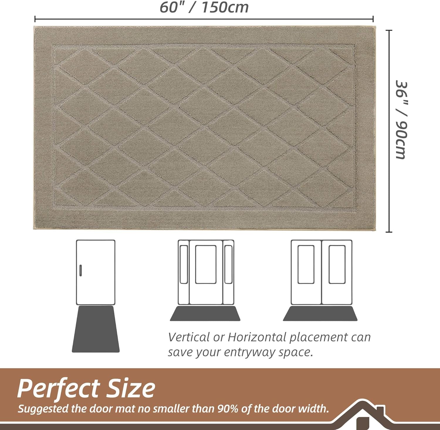BEQHAUSE Dirt Trapper Door Mat 36" x 60", Doormat Non-Slip Entryway Rugs Washable, Dog Door Mat Stain Resistant and Absorbent Welcome Floor Mat for Front Back Door, Muddy Wet Shoes & Paws, Beige