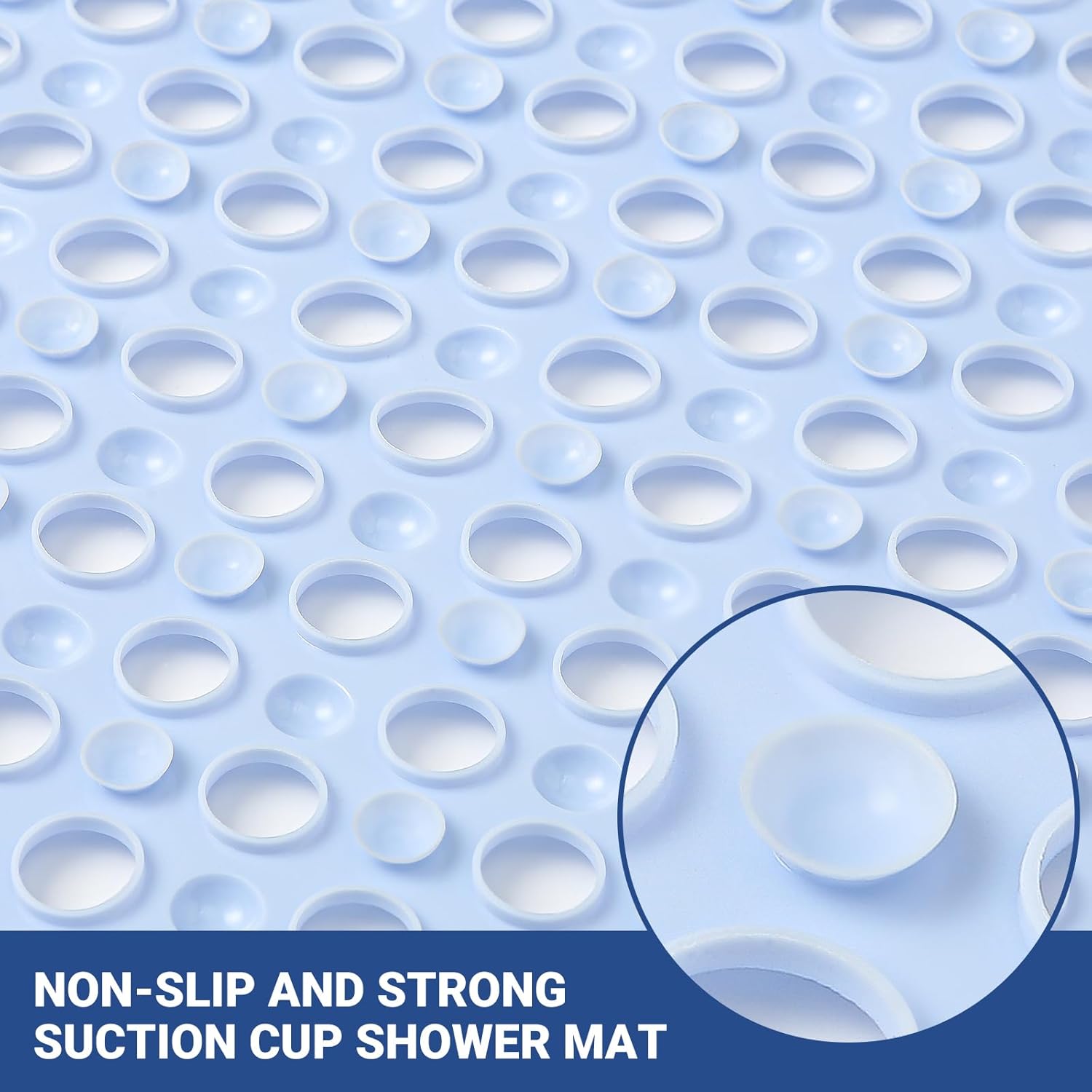 Non Slip Bathtub Mat and Shower Mat 31x17 inch,Bath Mat with Quick Dry Drain Holes and Suction Cups, Soft Comfortable Safe Bathroom Mat for Bath Tub, Floor, Tile (Light Blue)