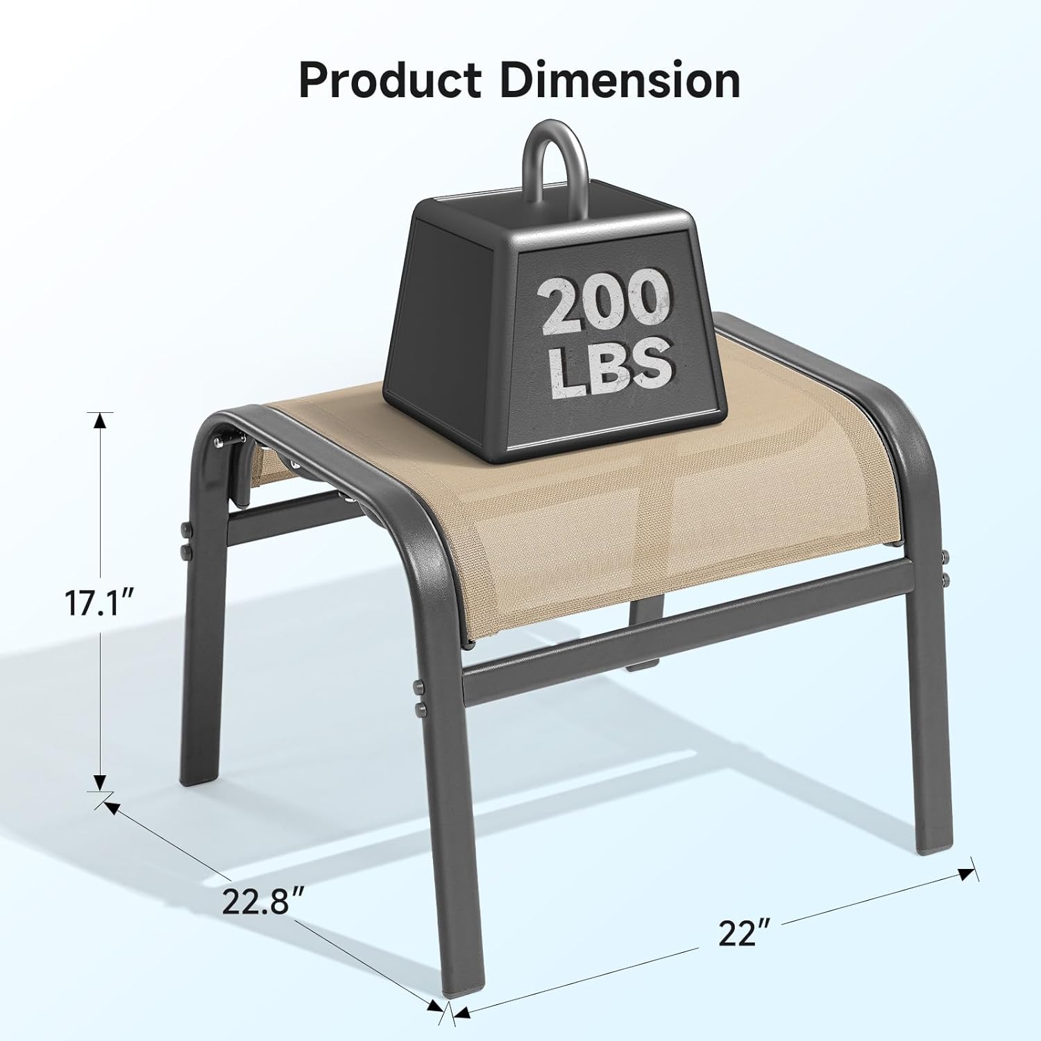 • Long-lasting Outdoor Use: Our outdoor foot rest is created for longevity, featuring a high-quality Textilene fabric and a hard-wearing metal frame. The breathable fabric is water-proof and easy to maintain, and the iron frame can resist rust and sun exposure for a lifetime, so you can use the outdoor ottomans for patio in any weather conditions without worrying about it fading or breaking down over time