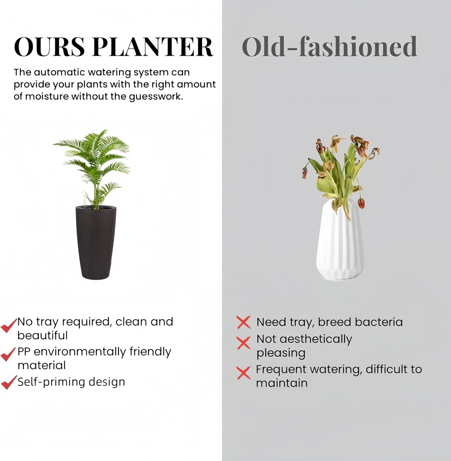 • 【Smart Watering System】Simplify plant care with our planters' built-in drainage and automatic watering features. It ensures that the risk of root rot is minimized, when the water level is below the plant's roots, the automatic watering system can provide your plants with the right amount of moisture without the guesswork.