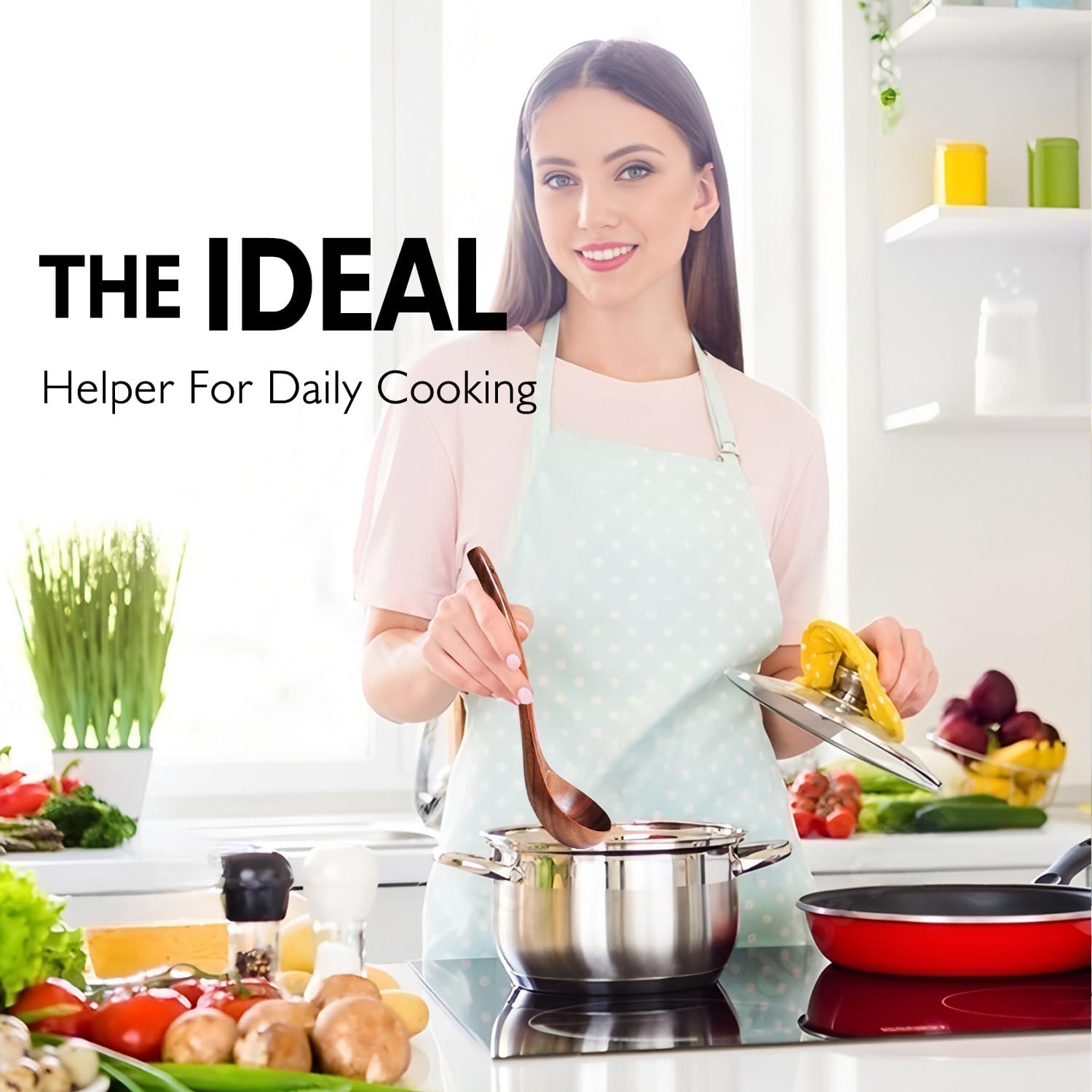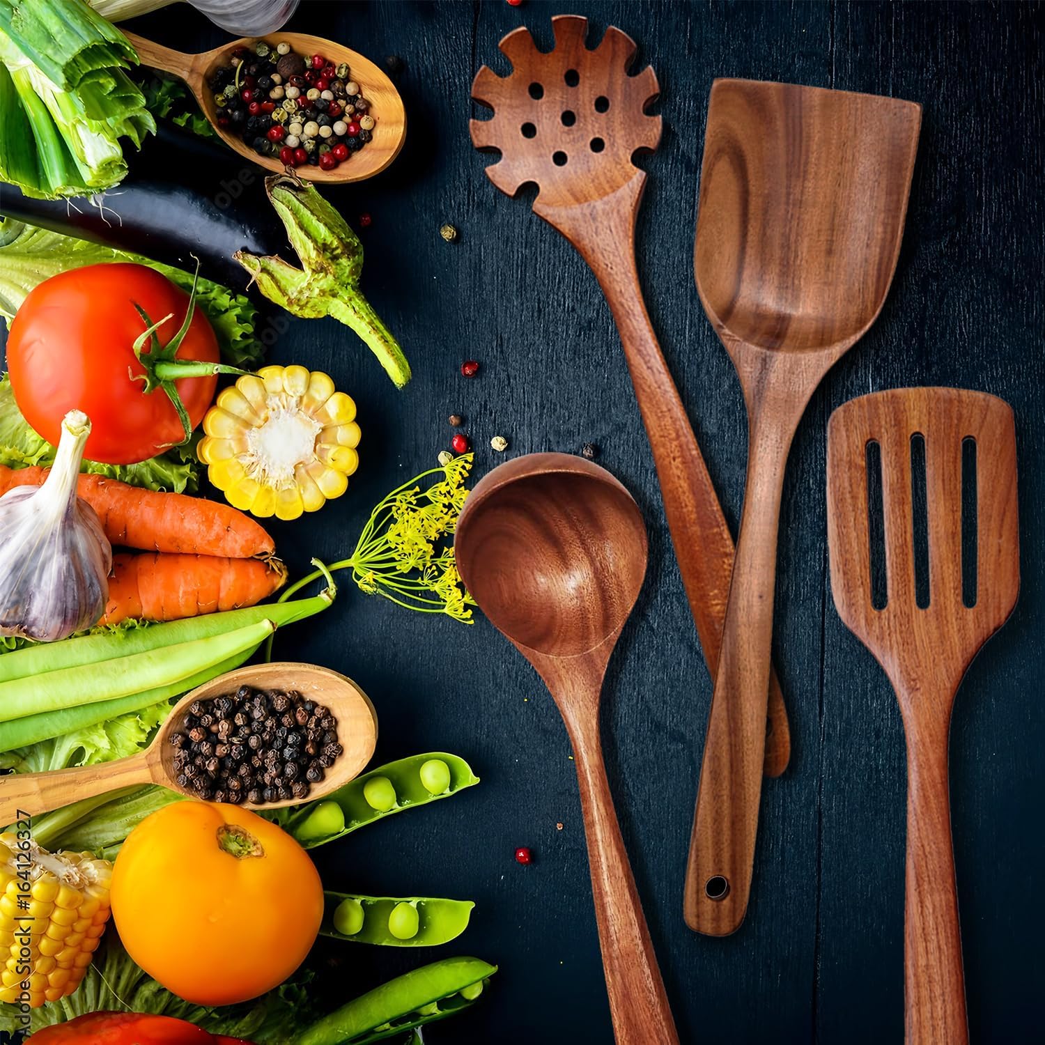 • 【Natural Wood】Wooden kitchen cookware set, handmade natural teak, environmentally friendly and harmless. It is one of the most durable woods, stronger and more durable than silicone spoons and bamboo spoons (Natural wood may have color differences, which is normal)