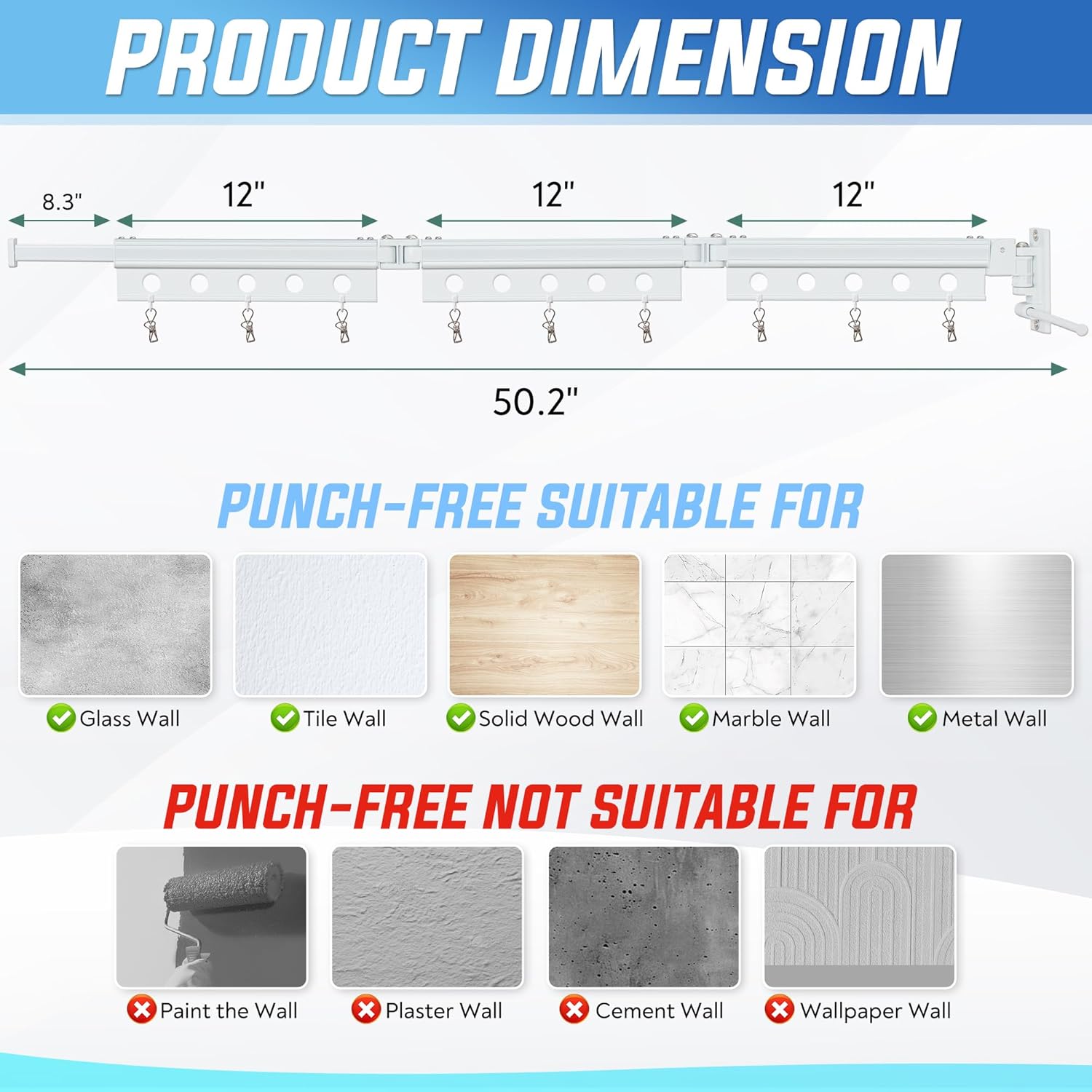 • Easy to Install -- Coming with the installation instructions and other installation accessories [Need Drilling] which help you install the drying rack clothing wall mount within 10 to 15 minutes. (Tips: Please make sure the wall or wood board is solid before installation.)