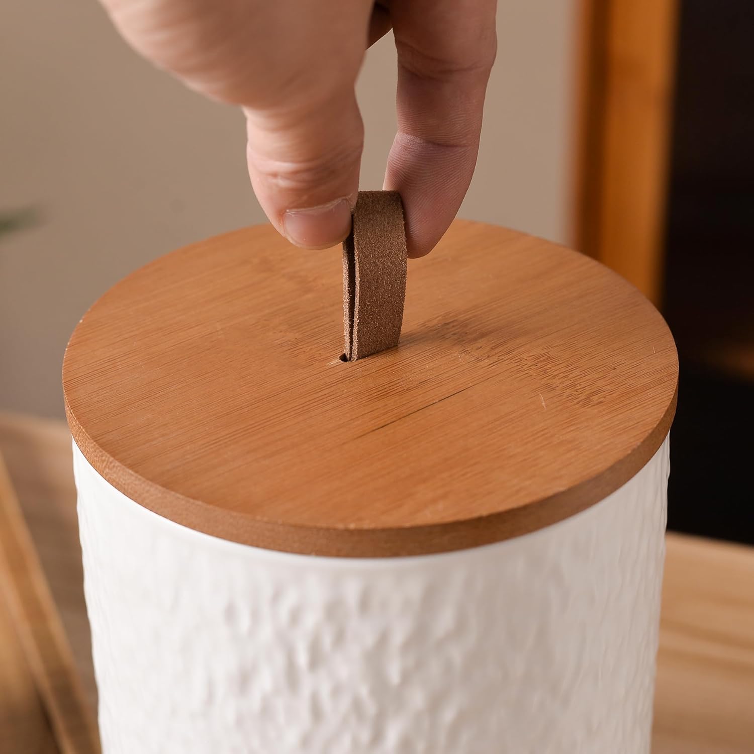 • Durable Ceramic with Airtight Seal - These canisters are made from durable ceramic that resists cracking and chipping. The bamboo lids feature silicone seals that lock in freshness, keeping your food or supplies fresh for a longer time.