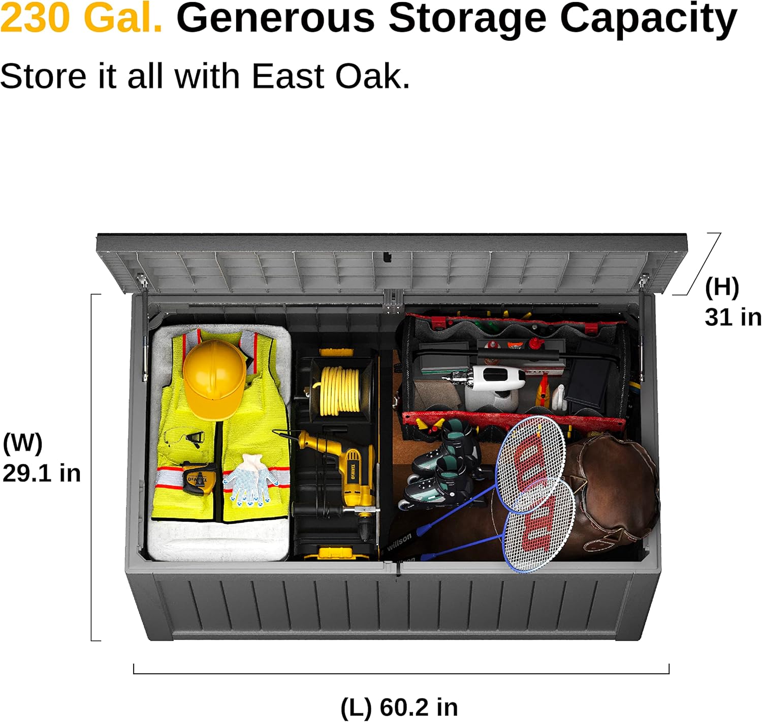 EAST OAK Outdoor Storage Box, 230 Gallon Deck Box,Grey - Lockable, Waterproof, UV-Resistant Large Storage Container for Patio Cushions & Garden Tools.
