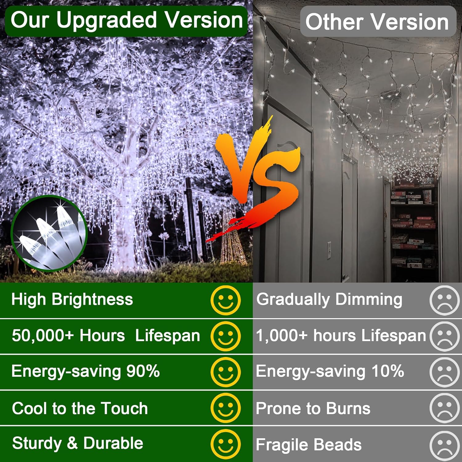 66FT 666 LED Outdoor Christmas Lights - 148 Ice Drops, 12 Pro Modes with Timer Memory & Brightness, Waterproof Hanging Ice String Light for Holiday Wedding Garden Fence House Decor (Cool White)