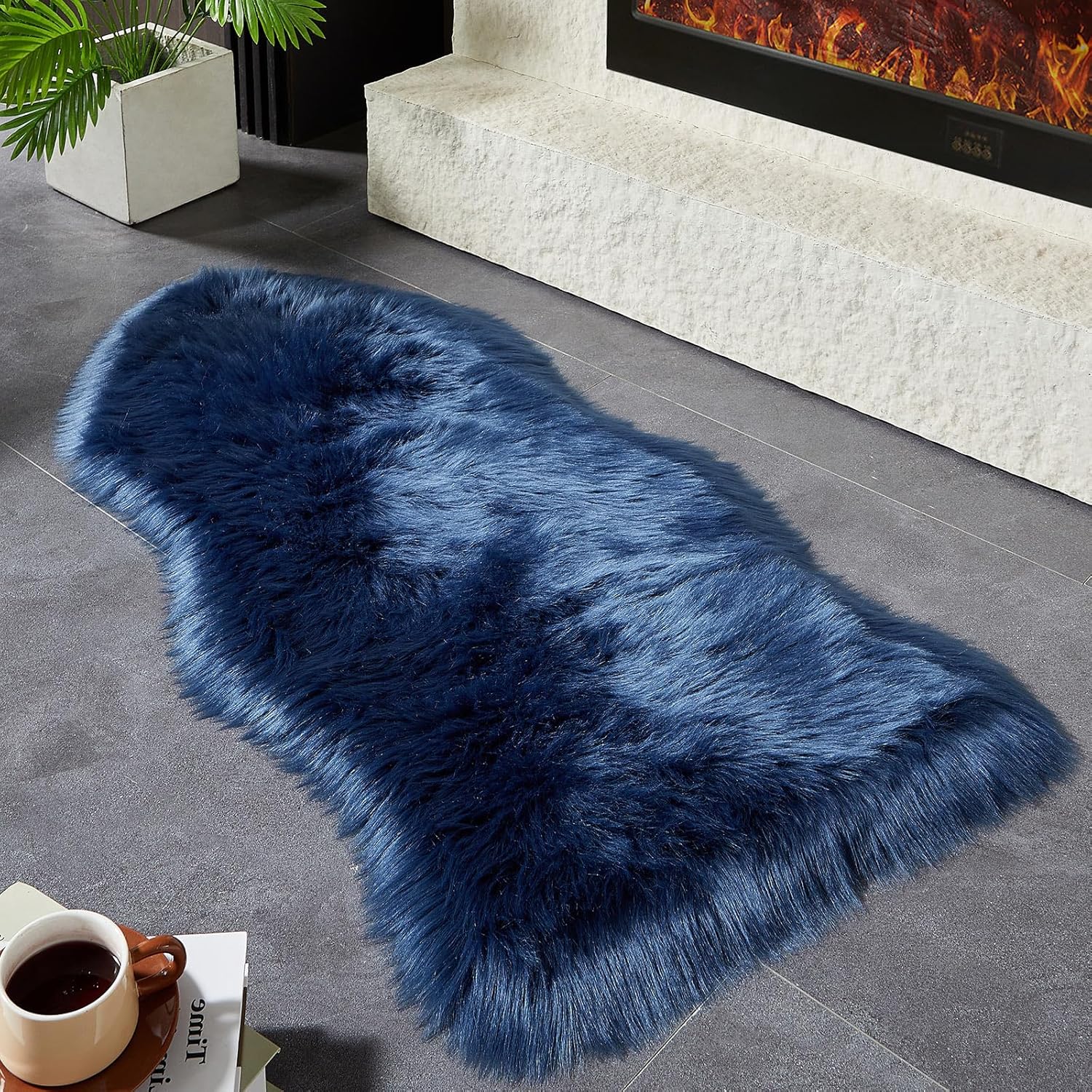 AMTOVO Faux Fur Rug, Dark Blue Area Rug, Fluffy Sheepskin Rug, Fuzzy Ultra Soft 2 x 4 ft Shag Rugs for Bedroom Sofa Throw Cushion Room Decor, Sheepskin