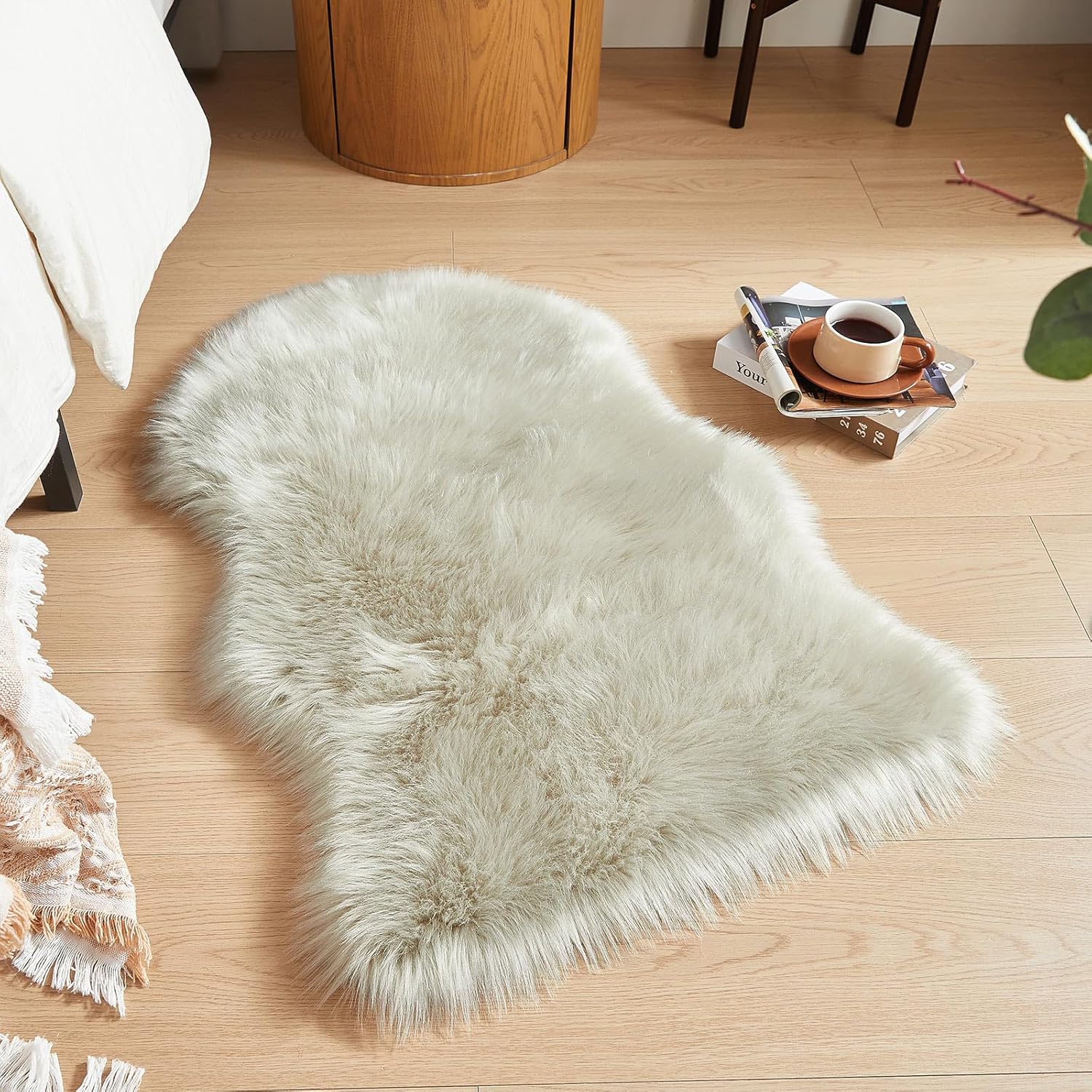 • 【Ultra-Plush & Hypoallergenic Faux Fur Rug】Crafted from premium faux sheepskin fur (like a sheepskin rug), this fluffy rug features 2.8-inch high-density shag rug pile for cloud-like softness. Made of 100% polyester fiber, it's hypoallergenic, no shedding, and safe for kids, pets, perfect as a bedroom rug or living room rug.