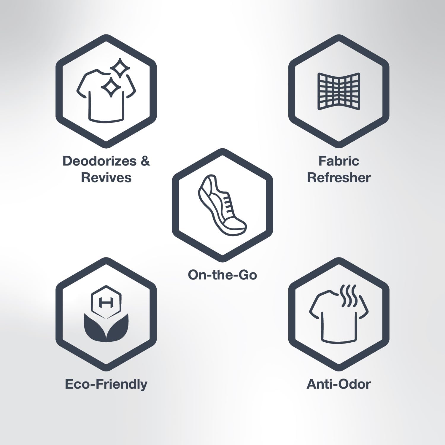 • Revive & Refresh All-in-One Spray – Fabric refresher odor eliminator spray made specifically to clean, remove odor, and deodorize fabrics, gear and anything else. Perfect for freshening fabrics and gear that can’t fit in a washing machine or between washings to keep fabrics smelling fresh and odor free. One bottle that does it all.