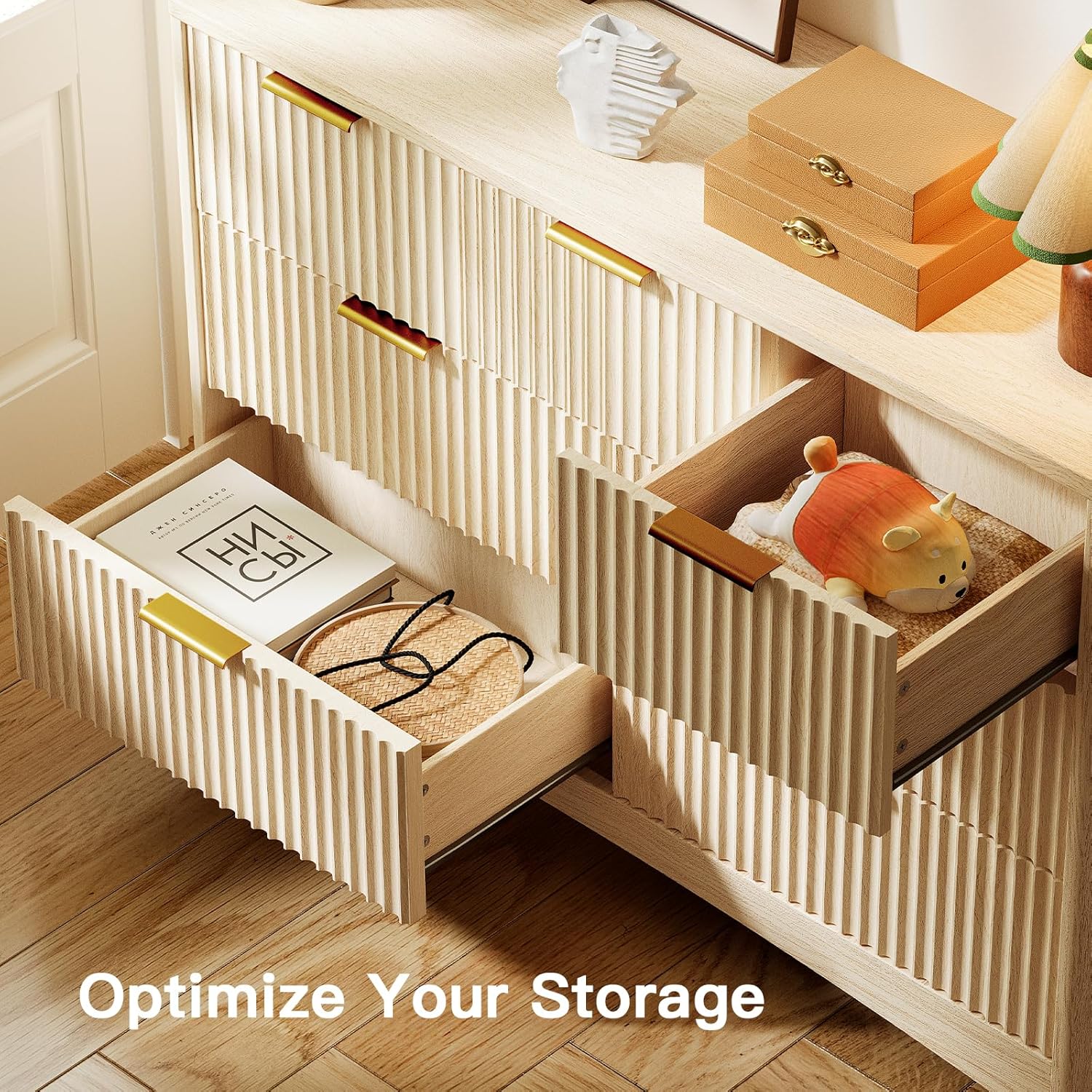 Pipishell Fluted 7 Drawers Dresser, Modern Wood Chest of Drawers, Dressers with Round Edge Design, Dresser TV Stand, Wood Drawer Organizer for Bedroom, Living Room, Hallway, Natural Oak