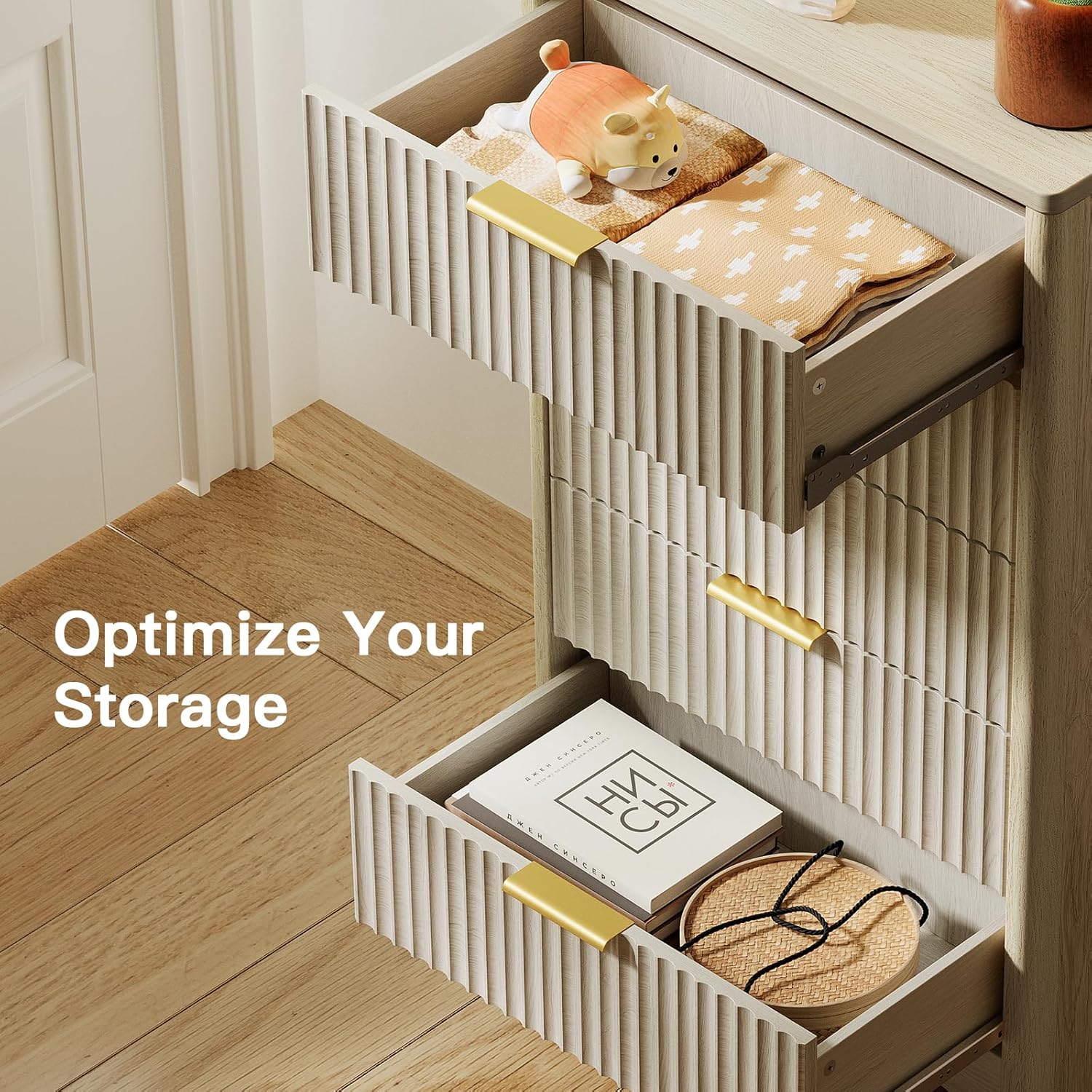 • 【Family-Safe, Durable & Eco-Friendly Design】Crafted from CARB P2-certified engineered wood, this fluted dresser is built to withstand daily life while prioritizing your family's safety. Rounded corners reduce accidental bumps, and the included anti-tip kit ensures stability even in busy homes with kids and pets. Reinforced construction supports heavy loads—each drawer holds up to 22 lbs., and the sturdy top bears up to 176 lbs. Scratch-resistant and waterproof, it's an eco-conscious, low-maintenance piece you'll rely on for years
